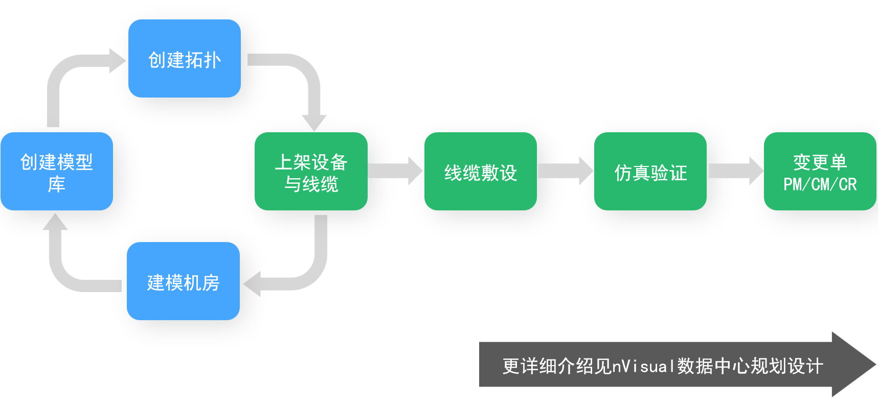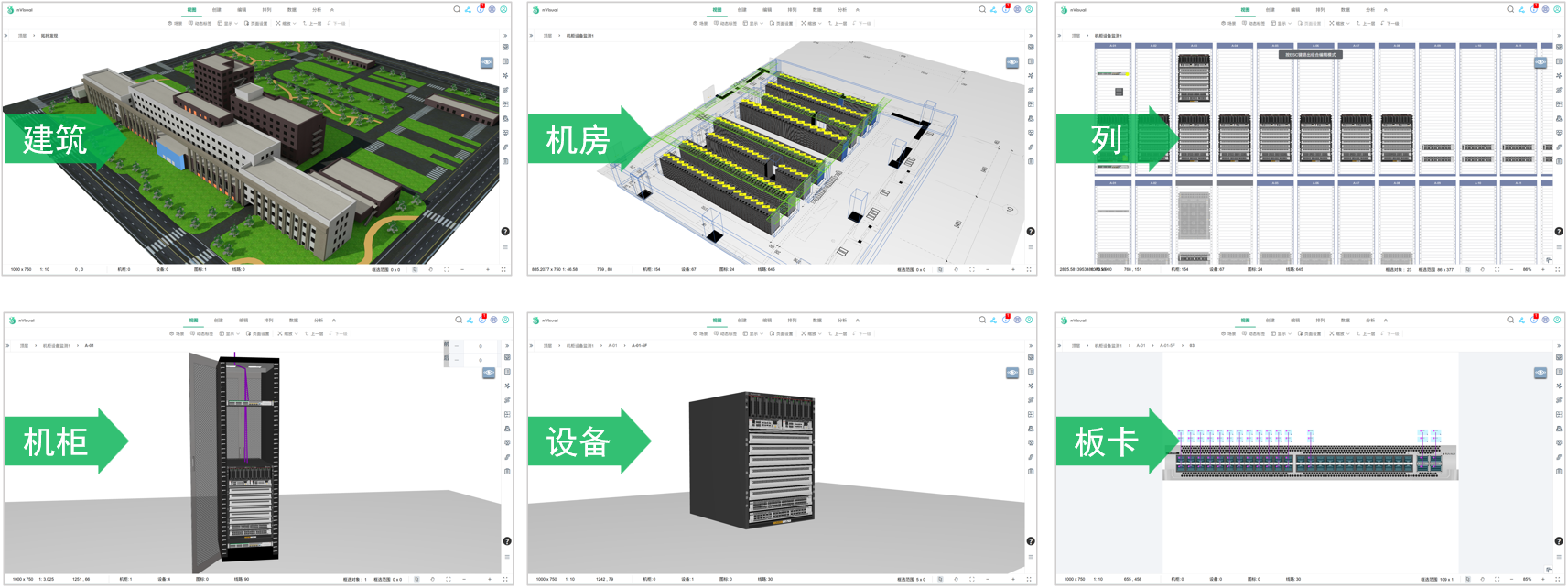 这正是nVisual创造的价值。它不只是一个物理资产台账,而是一个基于数字孪生技术的数据中心与光纤资源全生命周期管理平台。从多层级3D可视化建模、自动链路生成、网络拓扑分析,到存量设备批量导入、仿真验证与工单自动化,nVisual帮助用户将分散的CAD图纸、Excel台账和割裂的监控系统统一整合到同一个平台上,实现"一张图管基础设施"。