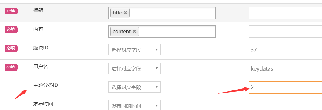 版块ID(必填):设置发布数据的所属版块,值是Discuz中已存在的版块fid。