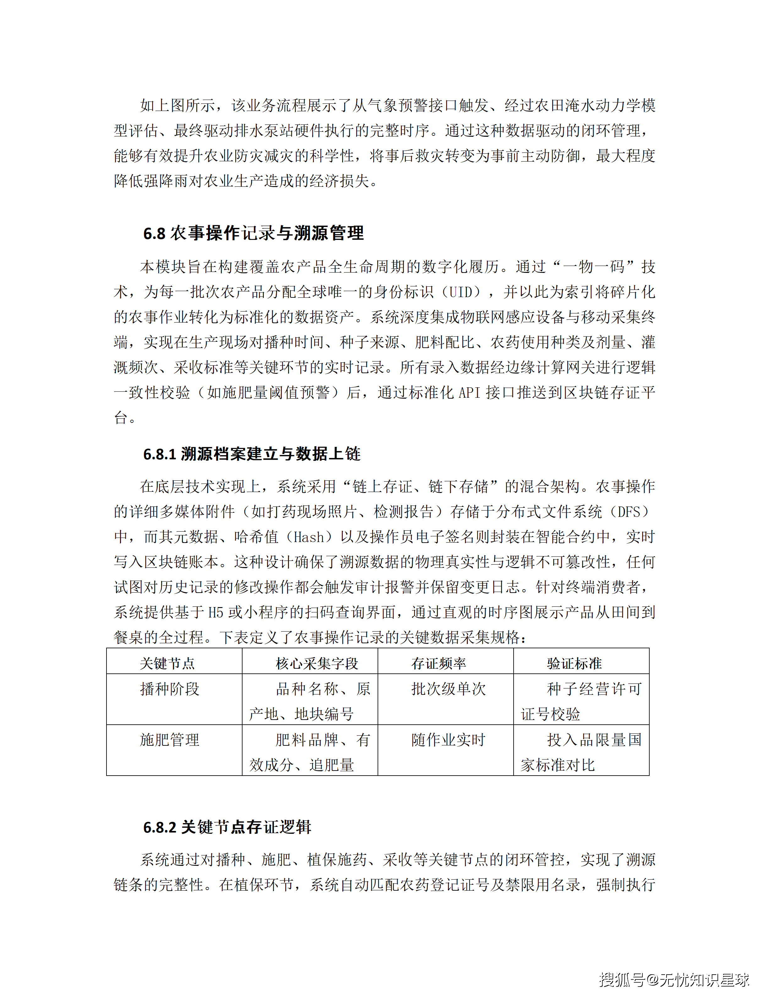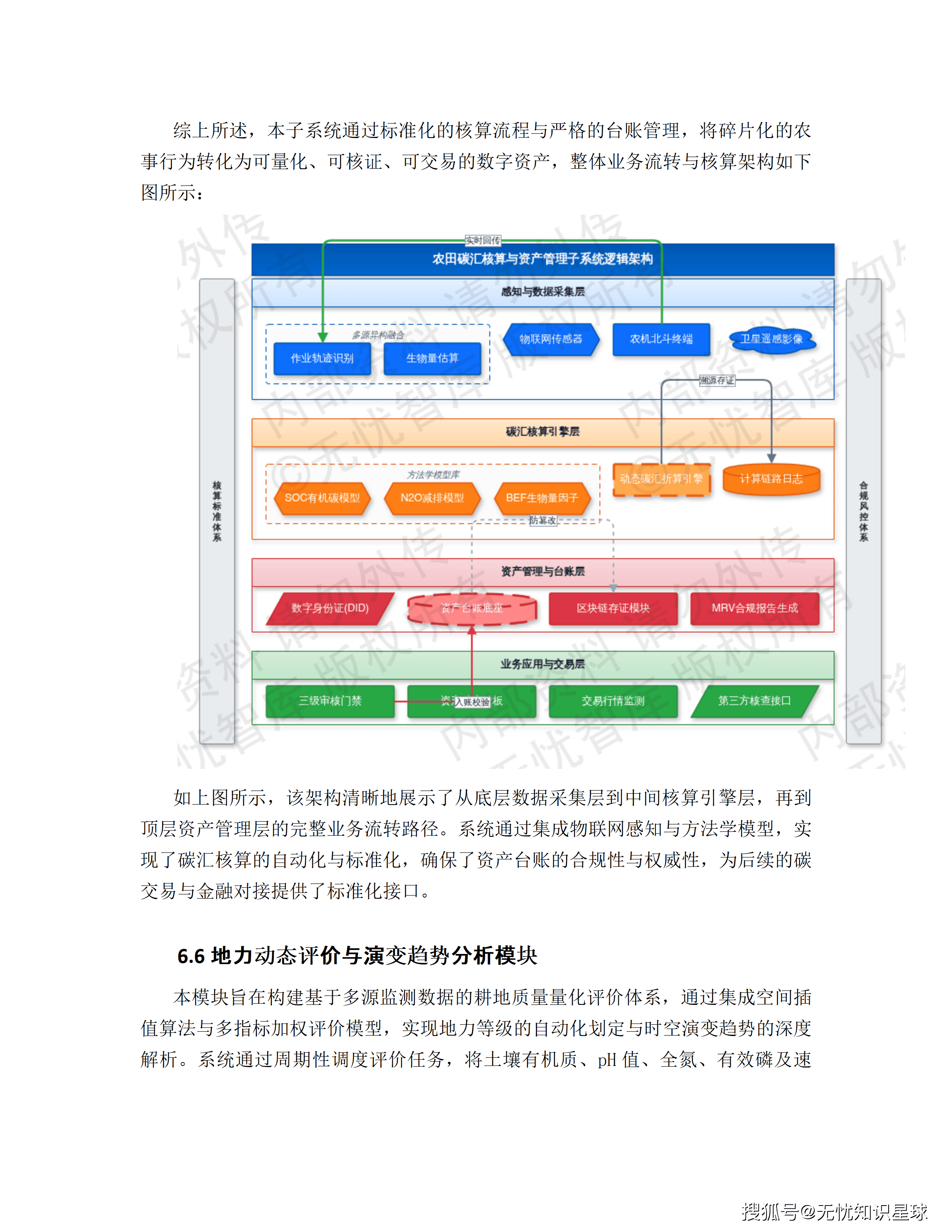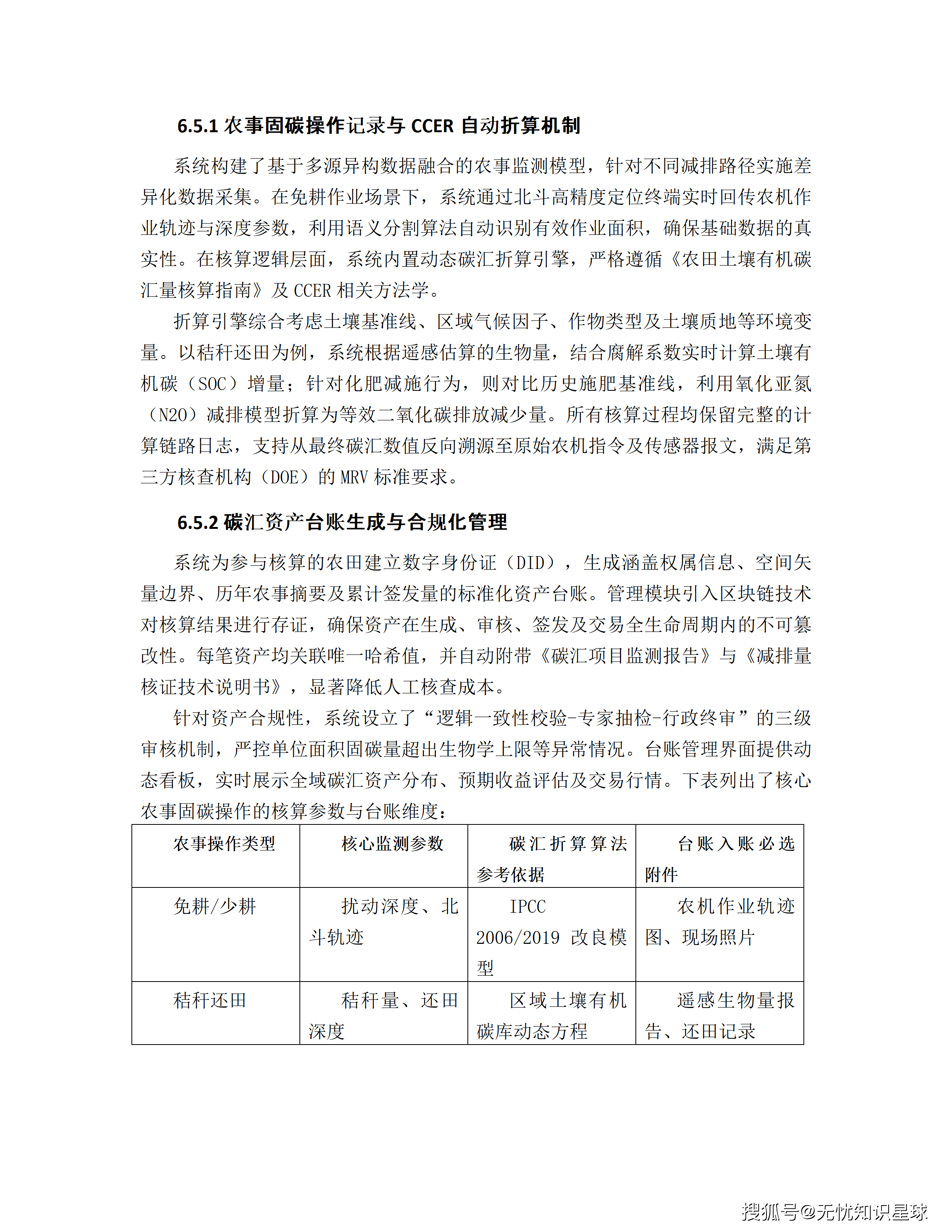 第四阶碳汇核算与价值转化:根据IPCC提供的碳减排核算方法学,系统自动计算生产过程中的减排量,通过区块链技术进行存证,对接农业碳汇交易平台,实现绿色生产的经济溢价。