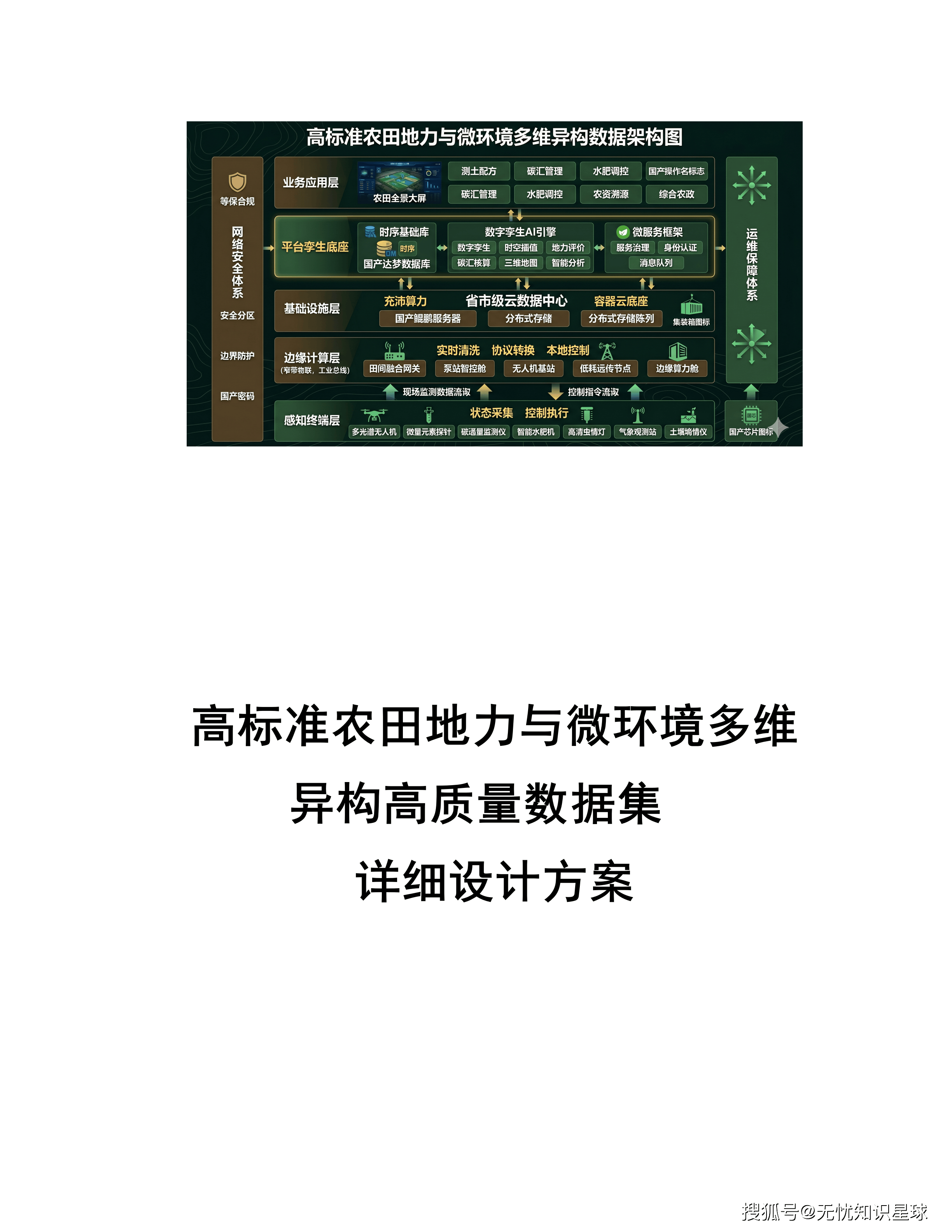 导读: 在"藏粮于地、藏粮于技"的国家战略框架下,高标准农田建设正在经历一场深刻的数字化转型------从钢筋水泥的物理工程扩张,向以数据为核心的精准管控演进。本文基于"高标准农田地力与微环境多维异构高质量数据集"详细设计方案,以数字化咨询顾问的视角进行深度解析,系统梳理其在架构设计、数据治理、物联网感知与算法引擎等层面的工程逻辑,并提炼出对同类项目具有普遍指导价值的实施洞察。