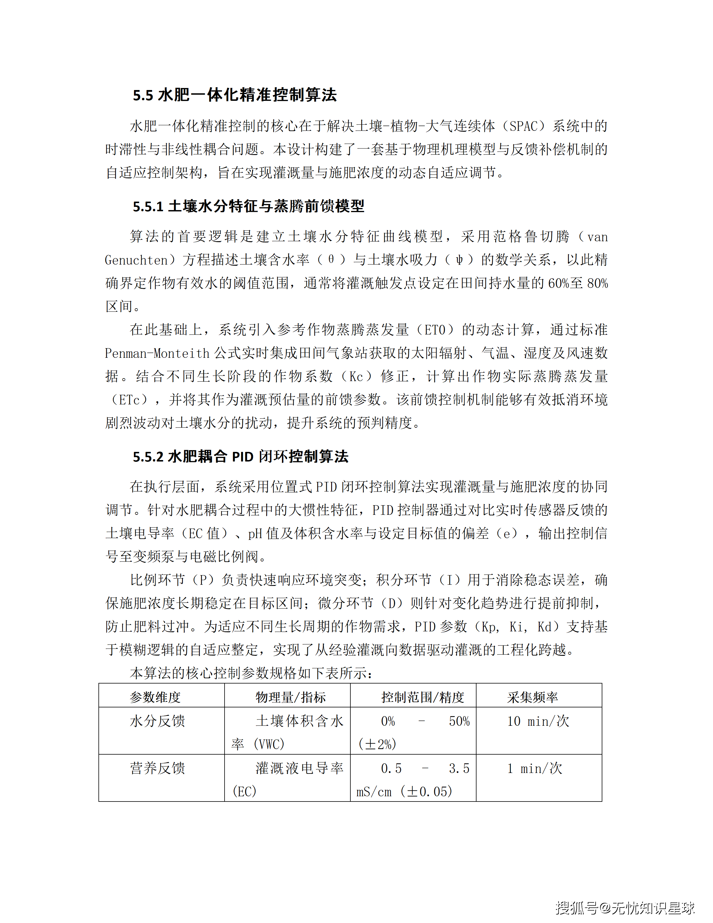第三阶测土配方决策:基于汇聚的土壤多维参数,系统调用养分平衡模型与作物生长模拟引擎,动态计算养分亏缺量,生成精准的"配方施肥建议书",通过PID控制算法将肥料利用率从传统的30%-35%提升至45%以上。