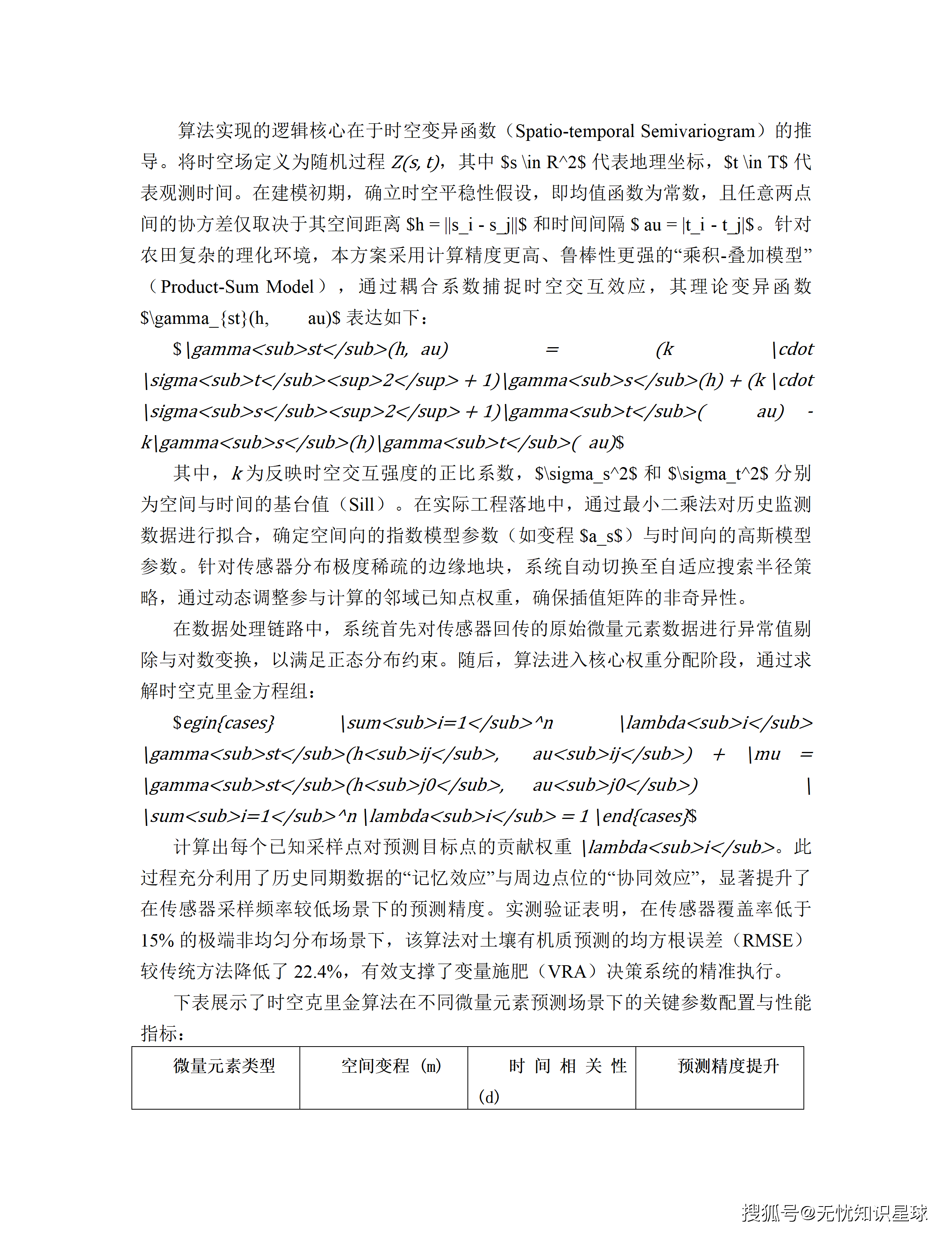 如果说物联网传感器是数据集的"信源",那么时空克里金插值算法就是将离散"信源"转化为连续"地力画像"的关键数学工具。理解这个算法对于理解整套方案的价值主张至关重要。