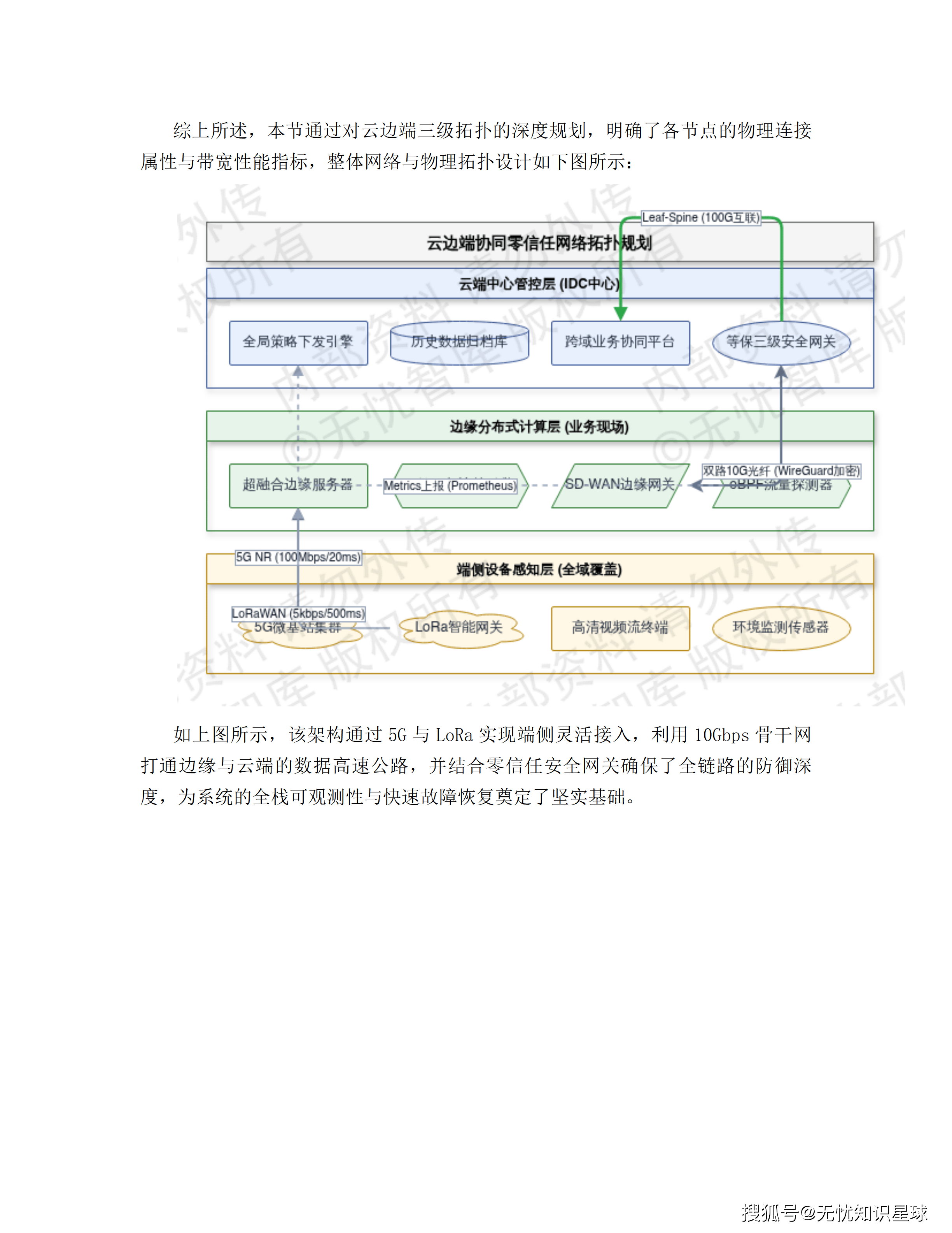 农业场景的通信环境是最复杂的之一:基站信号覆盖不均、地形起伏及作物遮挡构成的多径效应,使得单一通信链路难以满足高可靠性需求。方案采用"边缘感知、异构组网、协同冗余"的设计思路,构建基于LoRaWAN与NB-IoT的混合组网架构。
