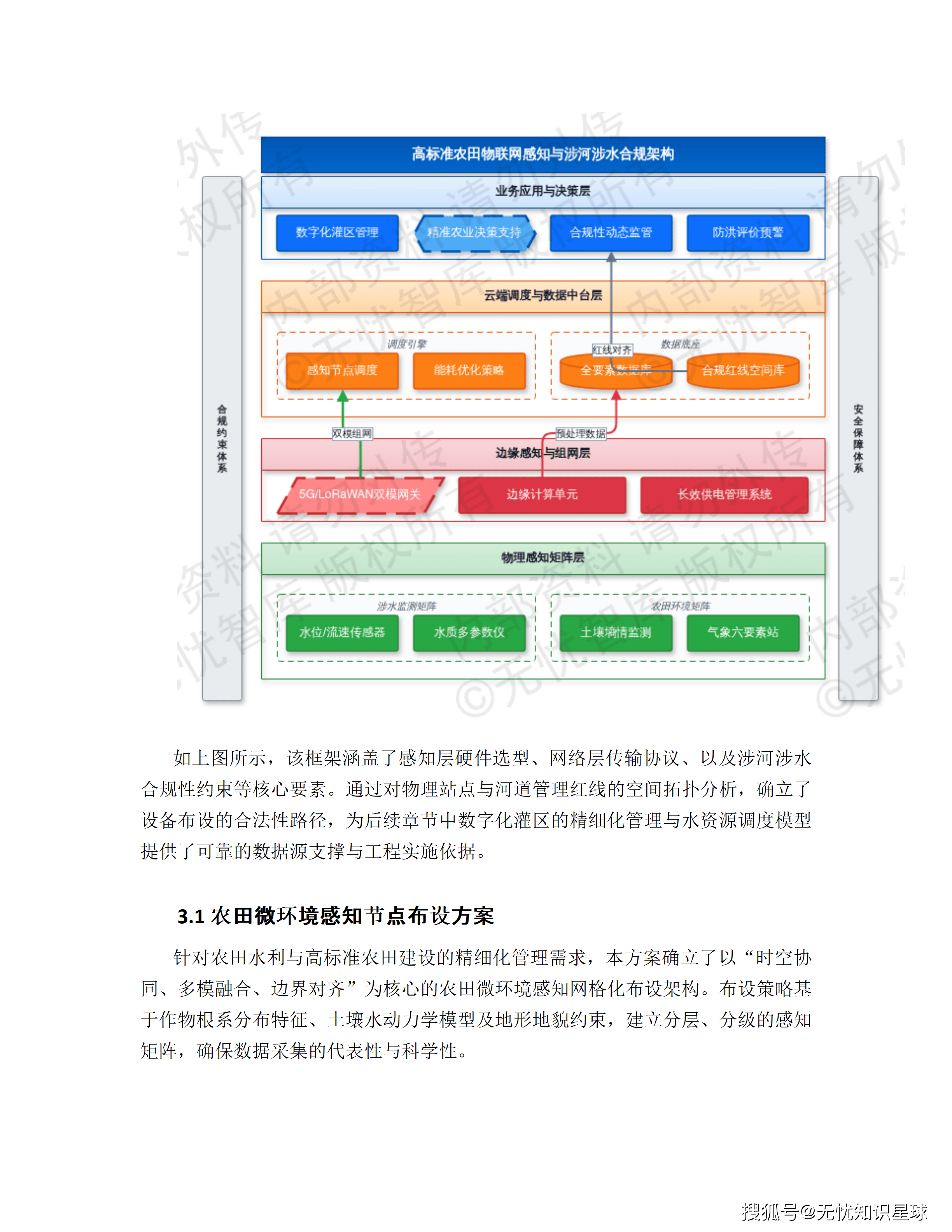 在农业数字化领域,涉河涉水合规建设是一个极容易被技术团队低估的风险点。本方案对这一问题的深度处理,是其区别于一般设计方案的重要特征。