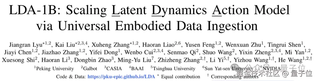 LDA-1B 模型首次在数据层面实现虚实共融、人机混合、质量参差、有无动作标签的数据统一有效利用。