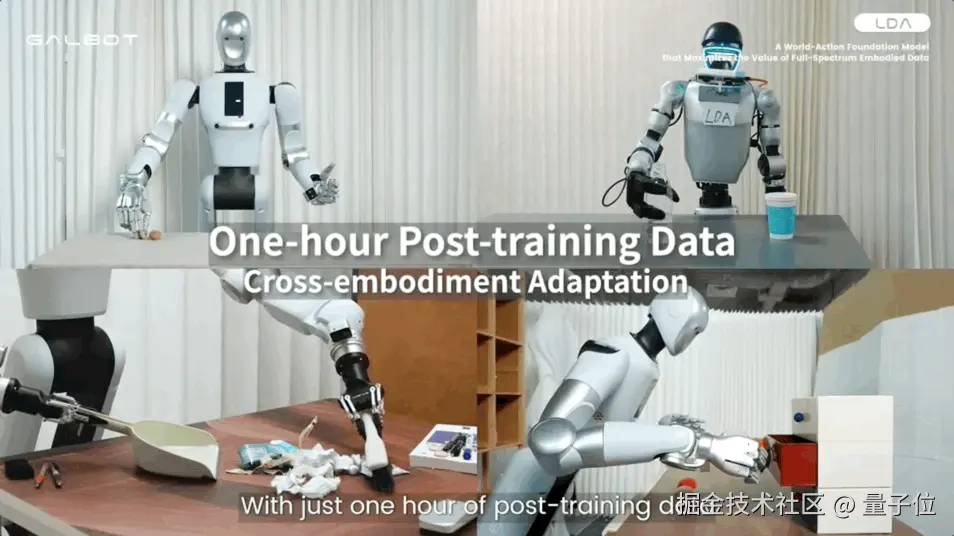 只需短短 1 个小时的后训练,它就能实现跨具身本体的自适应。