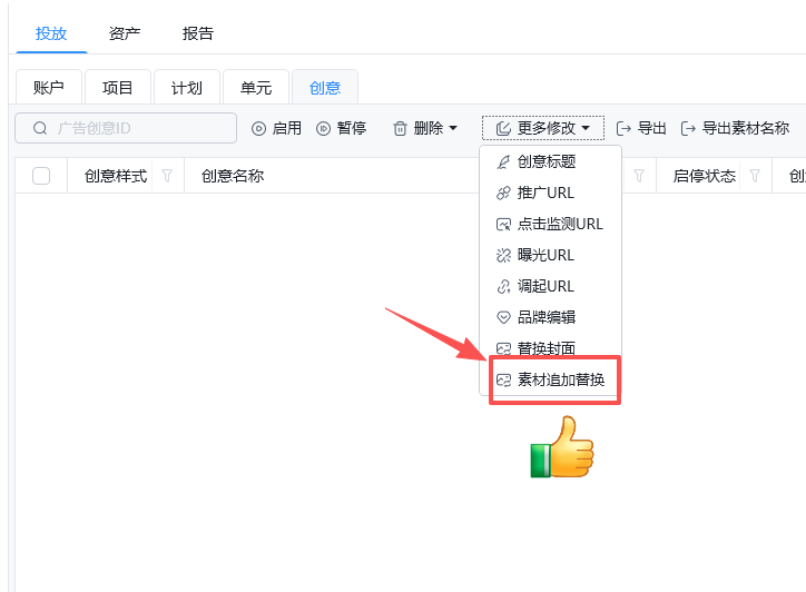 三、创意管理:素材追加 + 删除重提
