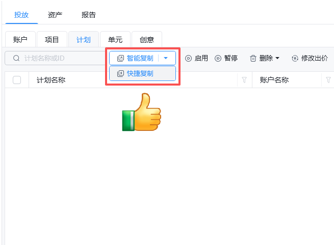 一、计划管理:跨账户复制 + 快捷操作