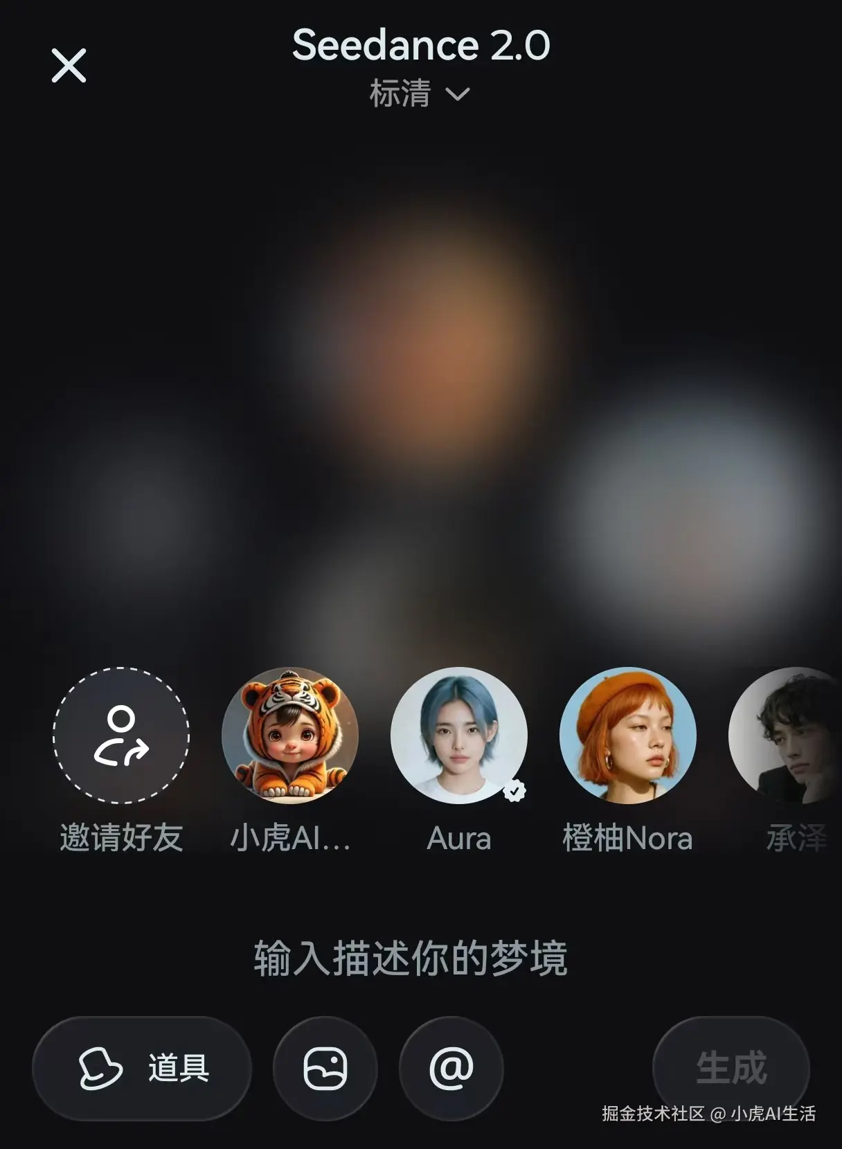 打开即梦,进入 AI 视频,选择 Seedance 2.0 模型,选文生视频入口。把提示词粘贴进去,点生成,等 30 秒。