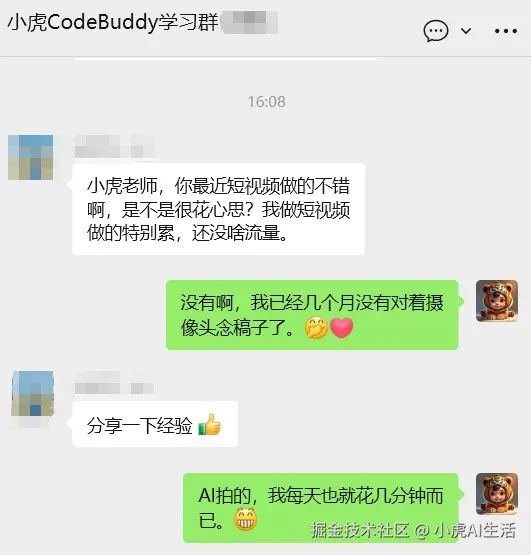 学员群的学生问我:"小虎老师,你最近短视频做的不错啊,是不是很花心思?我做短视频做的特别累,还没啥流量。"
