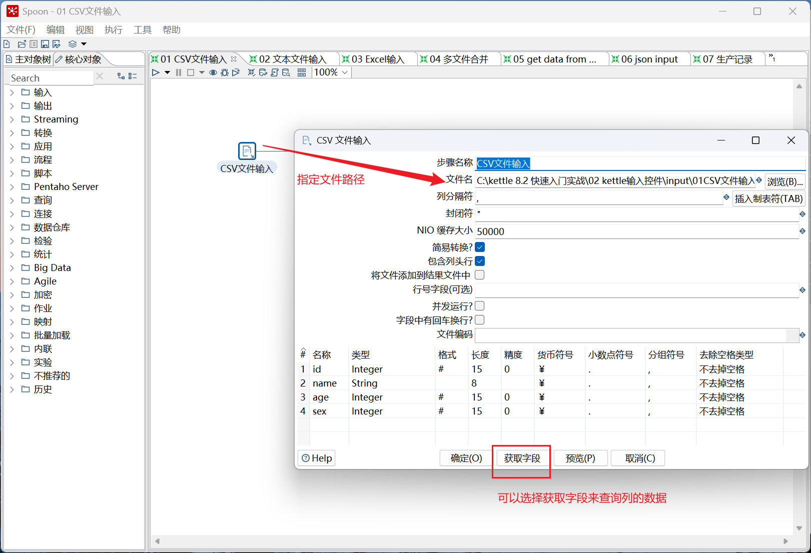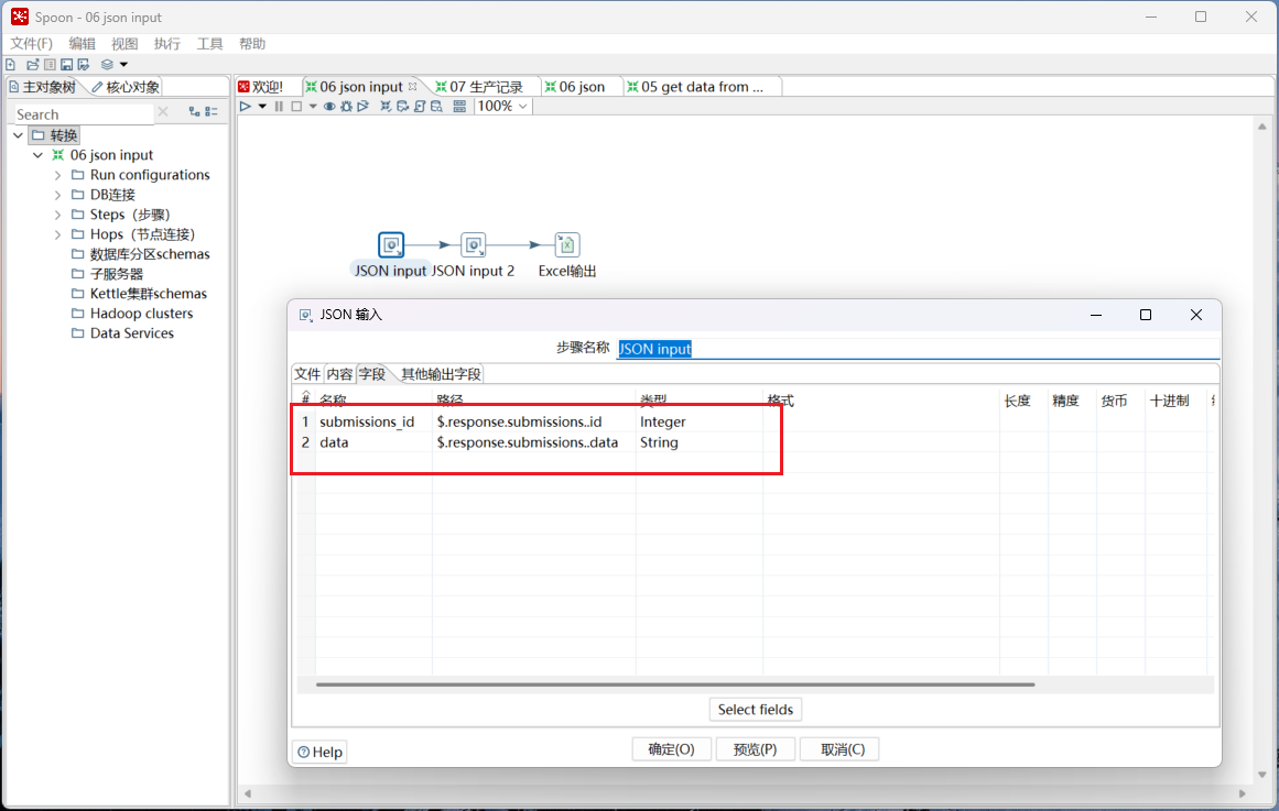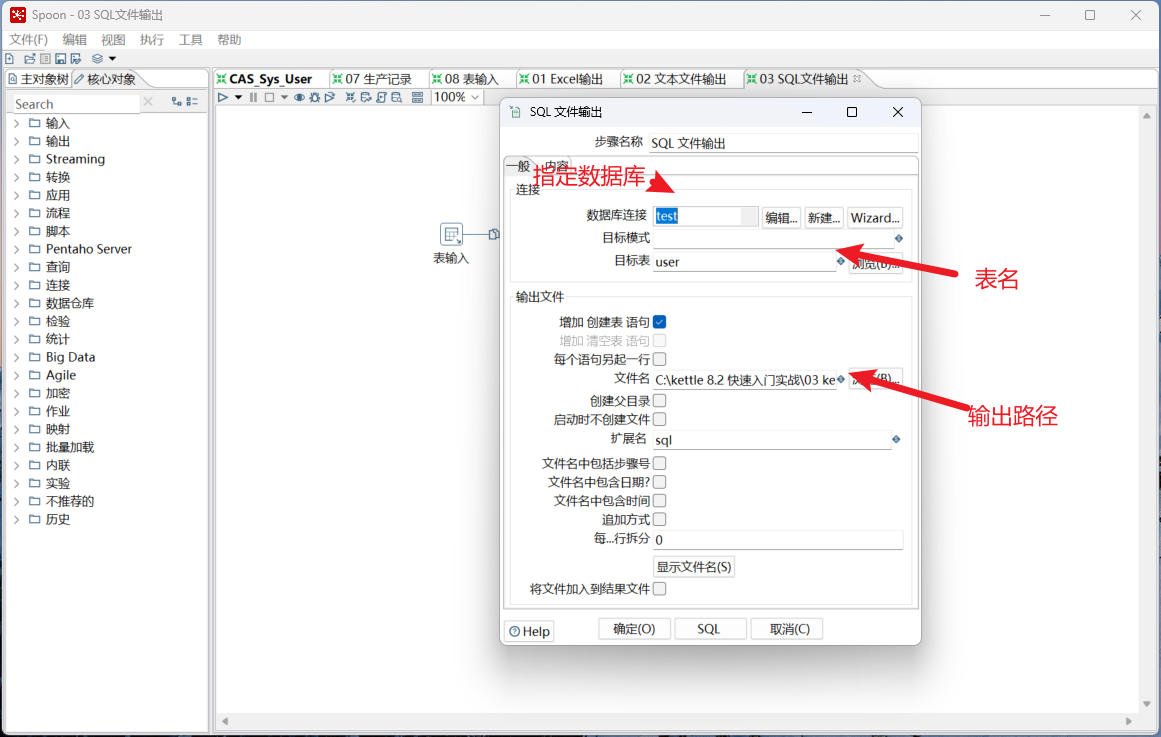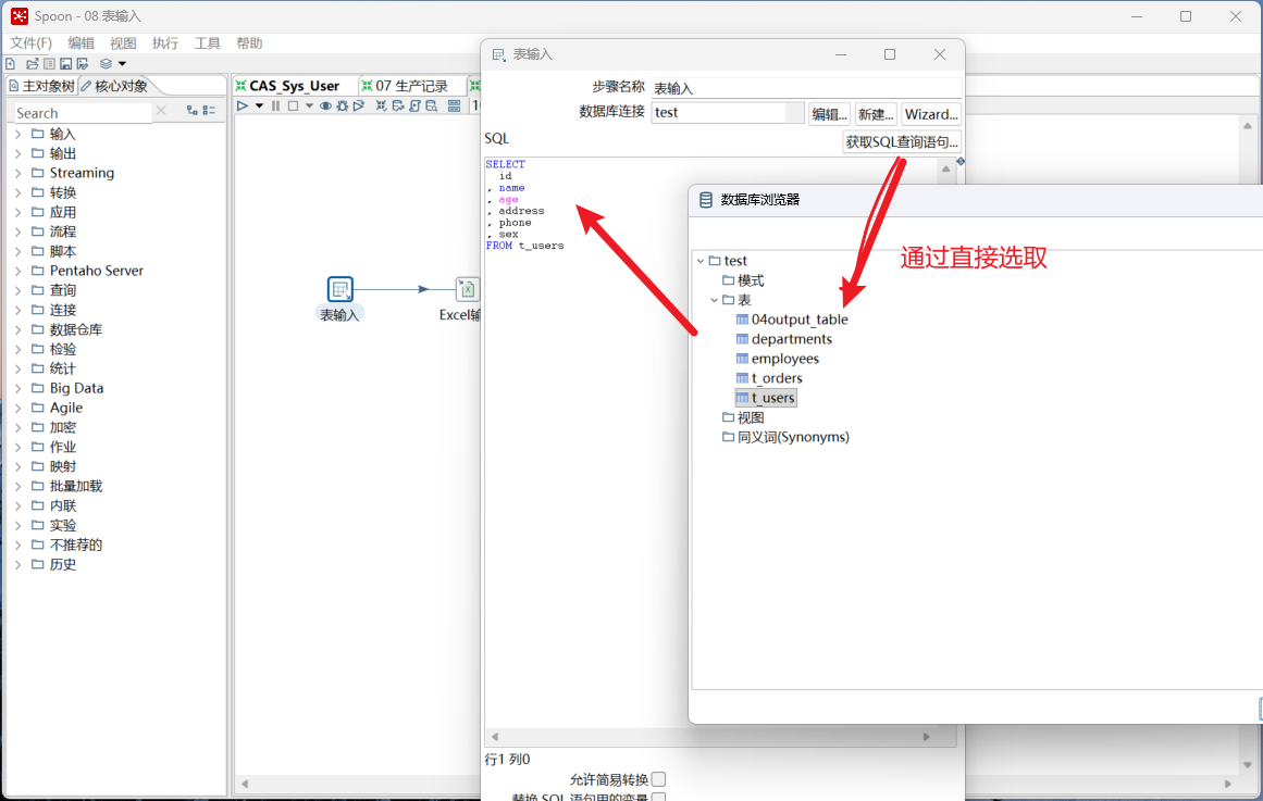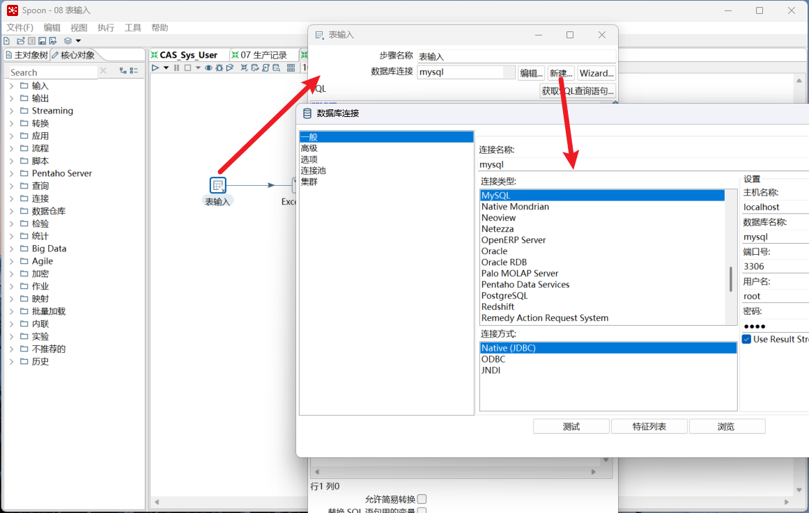 以下是以mysql数据库为例,拉入表输入,新建数据库连接,获取SQL查询语句