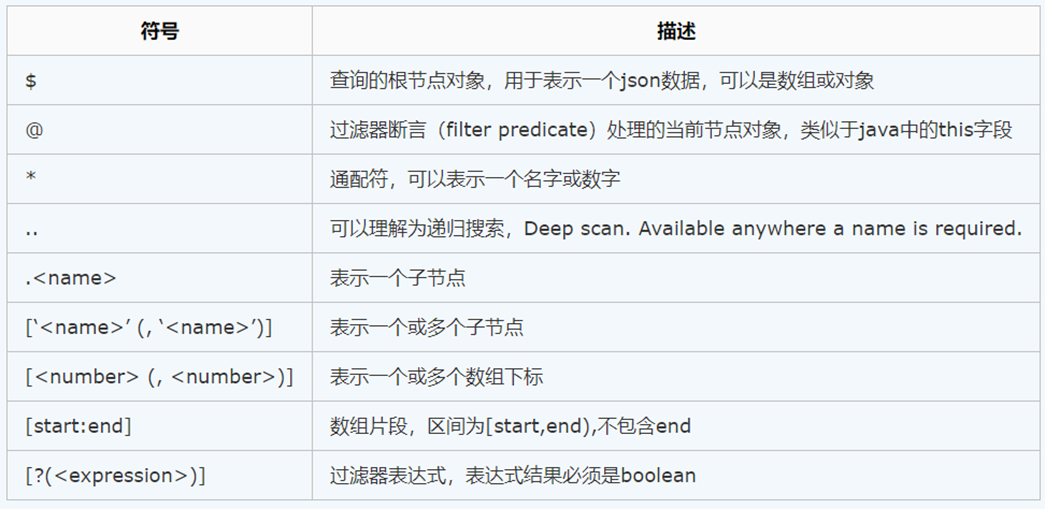JSONPath类似于****XPath在xml文档中的定位,JsonPath表达式通常是用来路径检索或设置Json的。