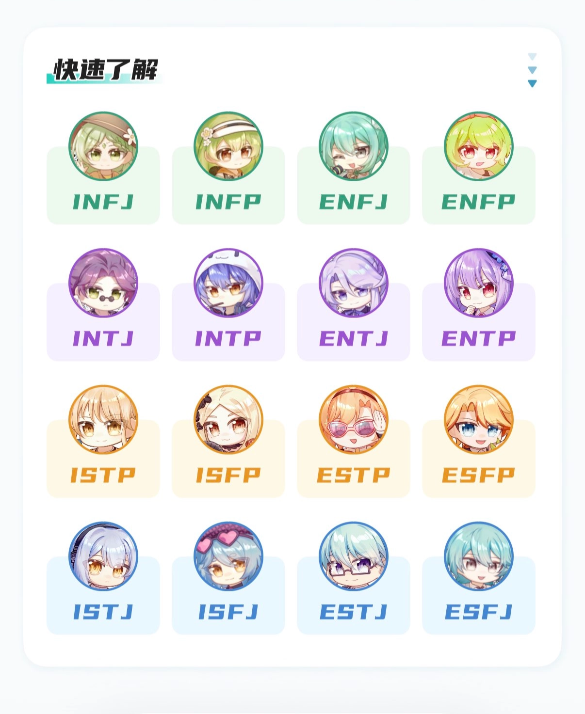 MBTIbaikeModel(bgColor: UIColor(hex: 0xEBF8FF), text: "ESFJ", imgPath: "ESFJ_head", textColor: UIColor(hex: 0x4386D2)),