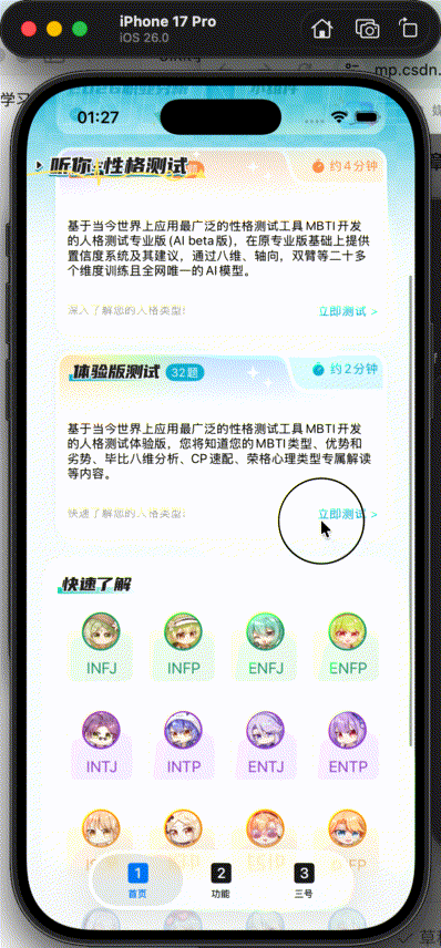 设置好之后把创建的QuickknowBtn的实例btn添加到背景视图mbtiwiki里, 让它可以正常显示。