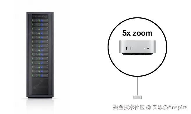 把那栋庞大的水冷建筑缩小到一台 Mac mini 里。在本地运行功能齐全的 LLM。数据完全由你掌控。苹果一直以来都倡导隐私保护,所以这完全合情合理。