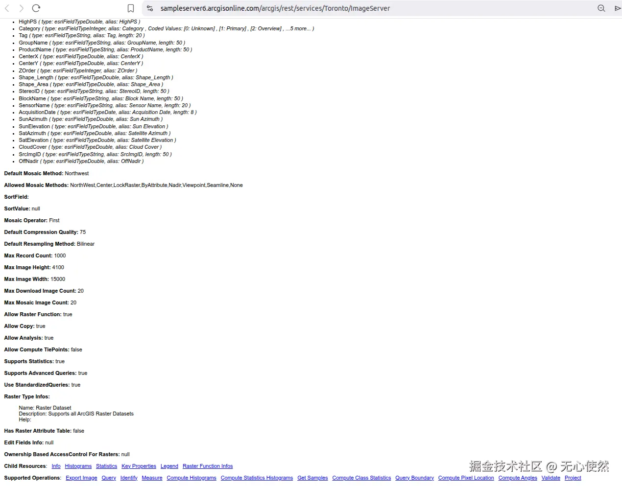 | /query | 查询镶嵌数据集的属性表(影像列表) |