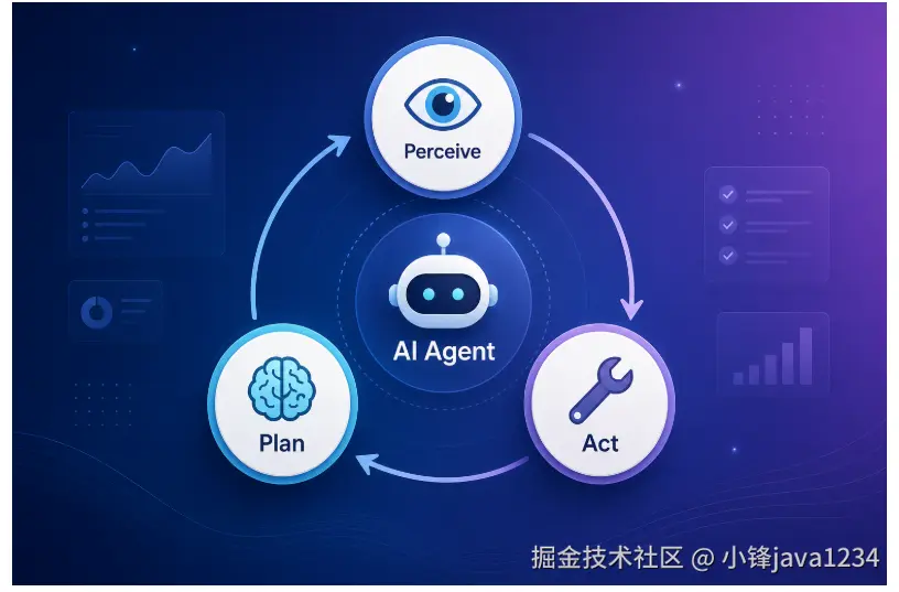 下面这张图用「感知---规划---行动」的循环,概括了多数 Agent 架构里反复出现的主线(细节各家实现不同,但思路相近):