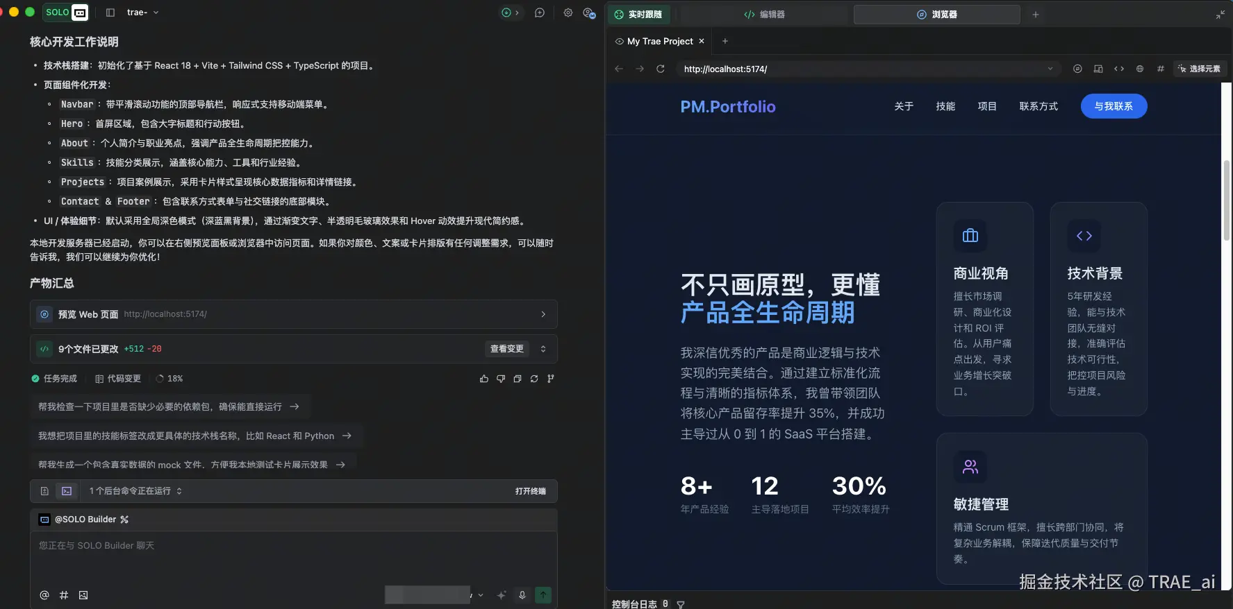 预览先于部署: 在 TRAE 中实时预览,部署前已可验证最终效果。
