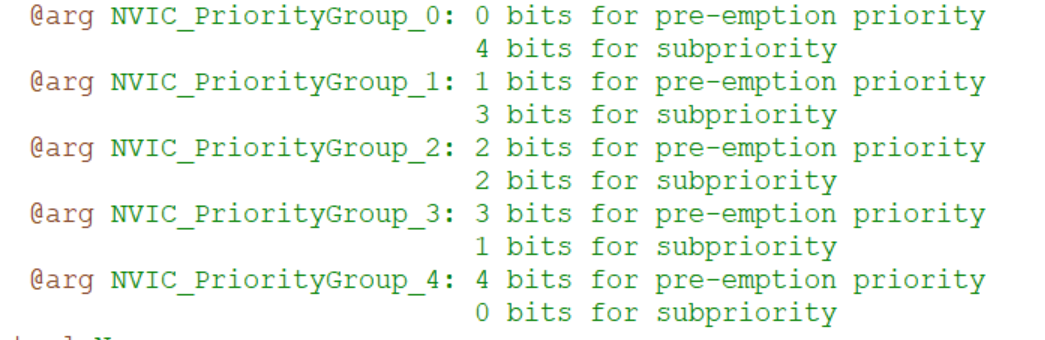 1.void NVIC_PriorityGroupConfig(uint32_t NVIC_PriorityGroup);