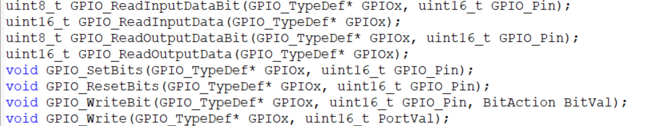 4.void GPIO_StructInit(GPIO_InitTypeDef* GPIO_InitStruct);:可以把结构体变量赋一个默认值