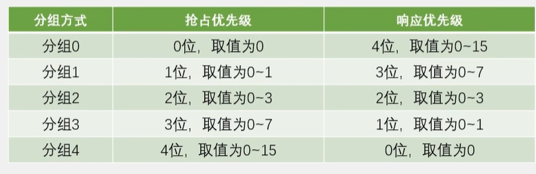 2.参数取值:可取下列列表任意一个来设置优先级,对应的数字分别对应抢占和响应优先级