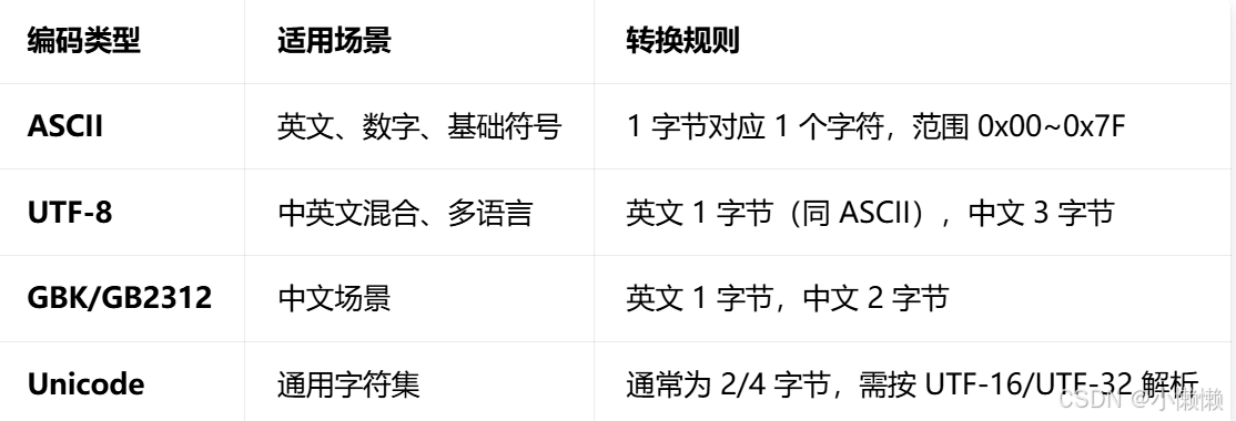 以ASSCII编码规则为例:如果发送端依次发送了0x48, 0x65, 0x6C, 0x6C, 0x6F, 0x20, 0x57, 0x6F, 0x72, 0x6C, 0x64,将这几个字节转换成十进制:72,101,108,108,111,32,87,114,108,100,这些十进制在ASCII码表中对应的是:72(H),101(e),108(l),108(l),111(o),32(空格),87(W),111(o),114®,108(l),100(d),即:Hello World。