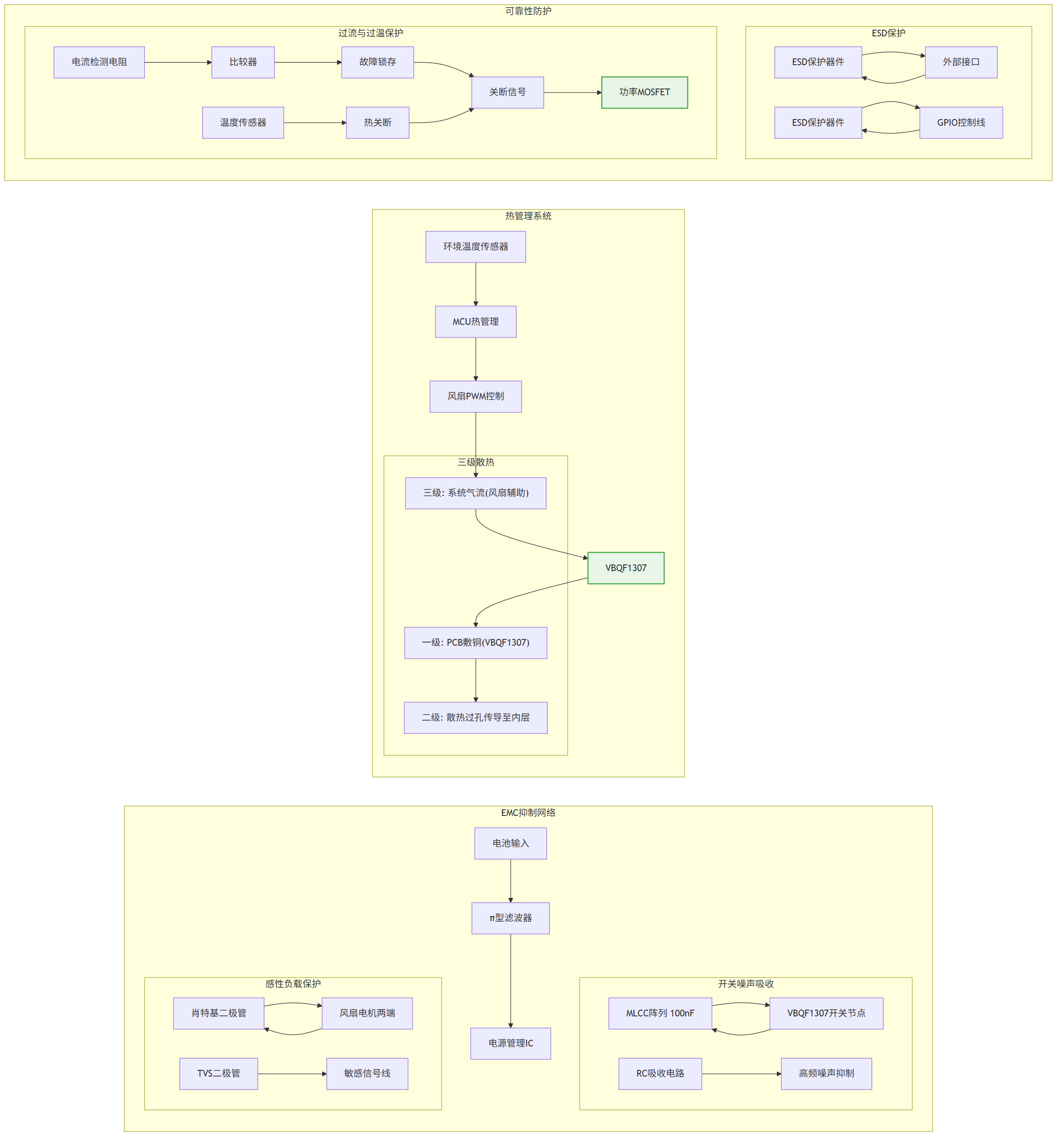 过流保护:在核心供电路径(使用VBQF1307)可考虑集成电子保险丝功能或通过PMIC进行限流。