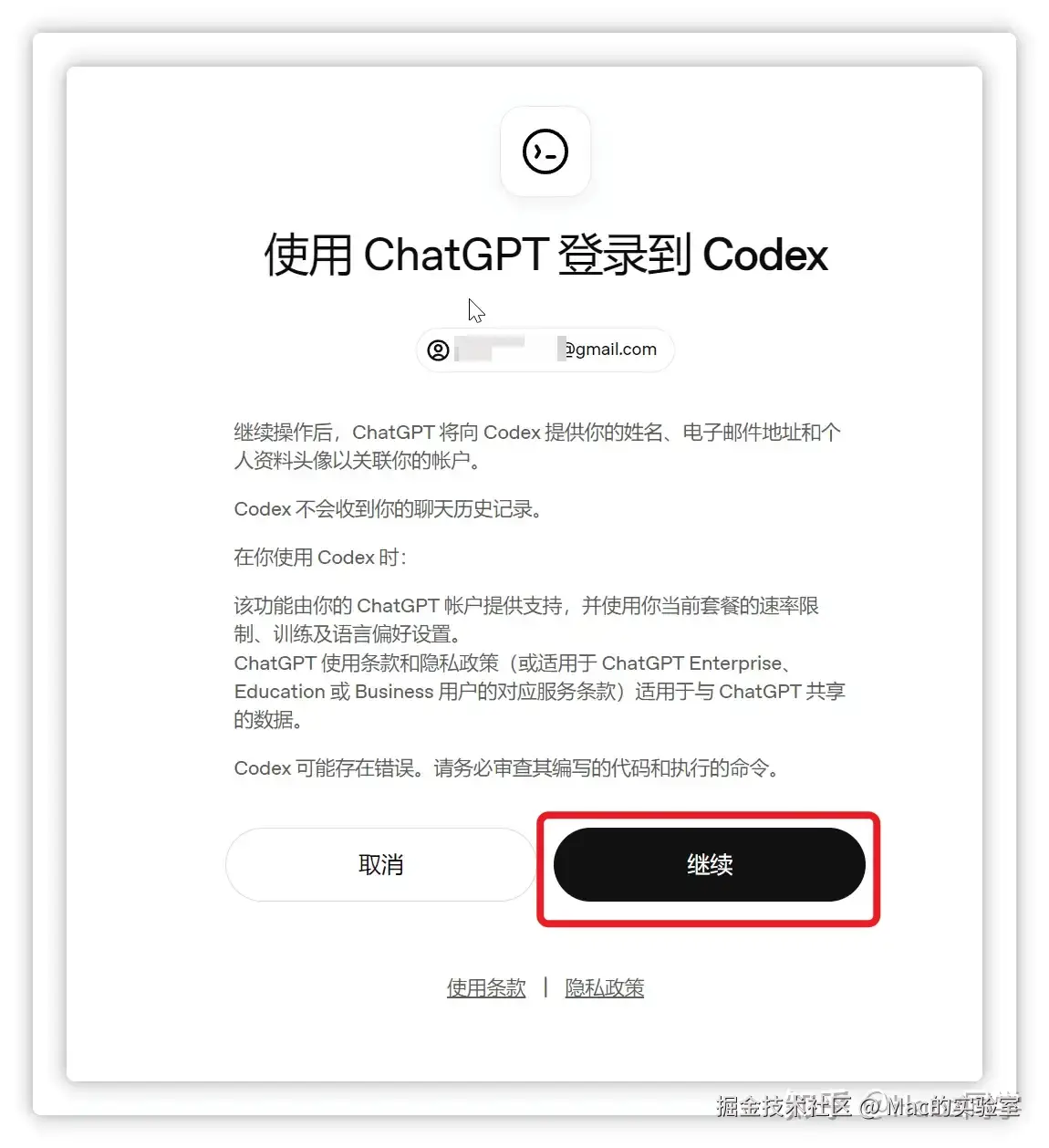 验证成功后点击继续就可以跳转到Codex桌面端使用了
