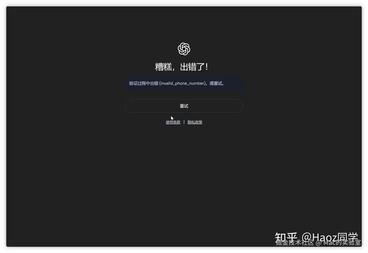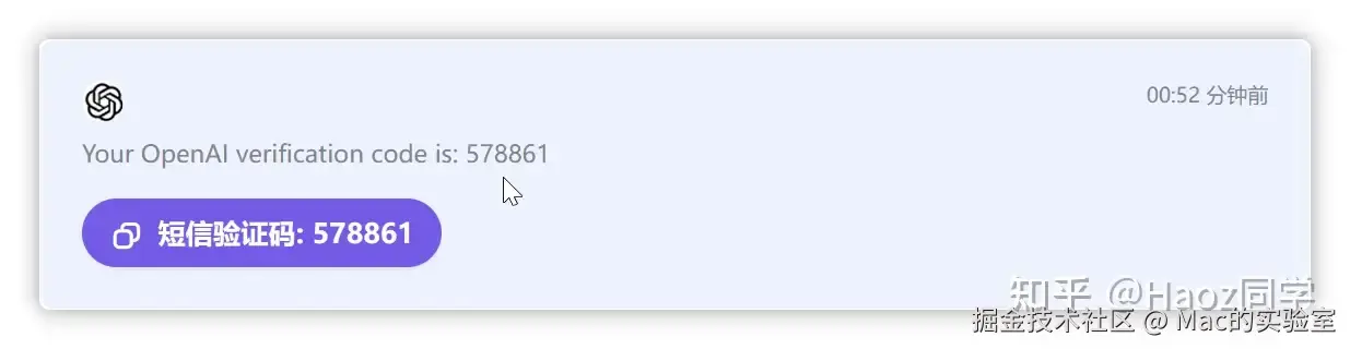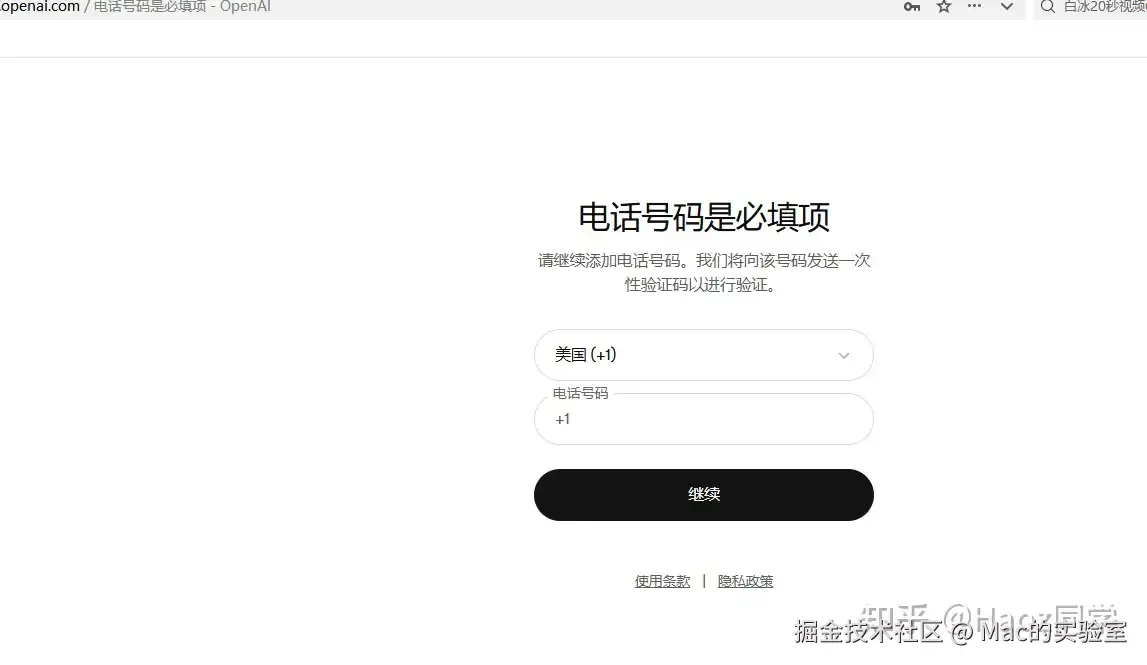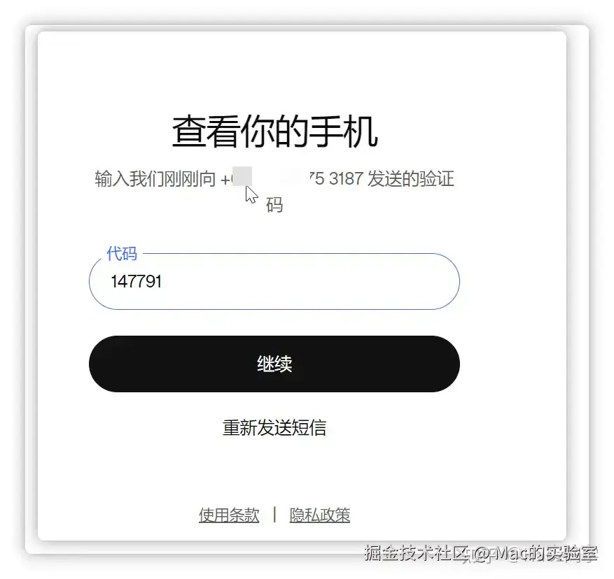 有一些国家的号码填进去,OpenAI会发送到Whatsapp上的,因此很多接码平台实际是收不到短信验证码的。觉得麻烦不想折腾的同学可以移步公众号:Mac的实验室 后台回复 sora 获取大神收藏的最新接码验证渠道。