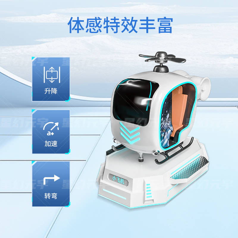 VR时空直升机以直升机舱体为载体,融合高精度VR画面与空间音效系统,为体验者打造一个逼真的飞行环境。当佩戴VR设备进入体验模式,仿佛真正坐进驾驶舱,伴随着引擎轰鸣,视角从地面缓缓升空,穿越云层,进入广阔的天空甚至外太空。
