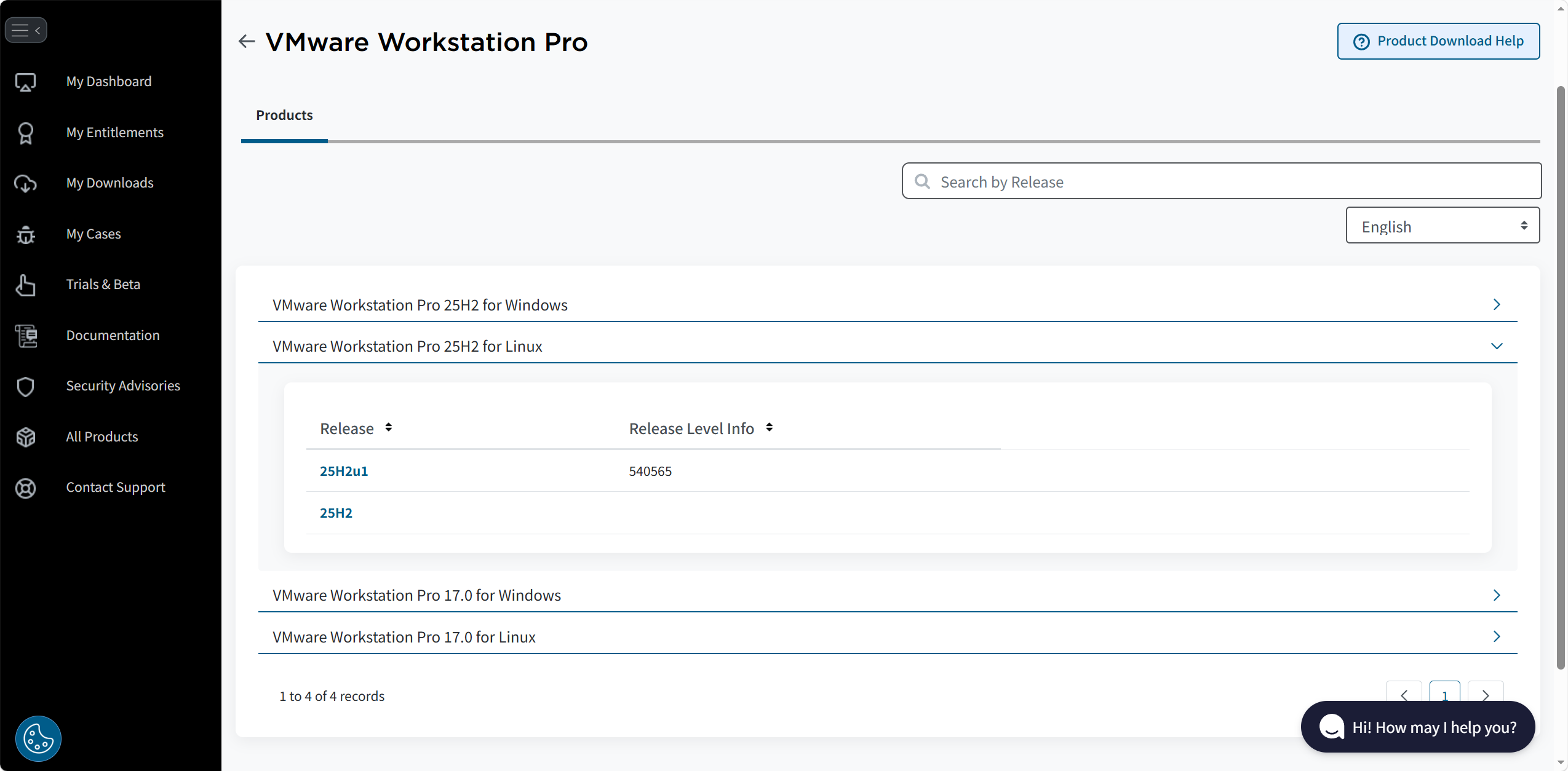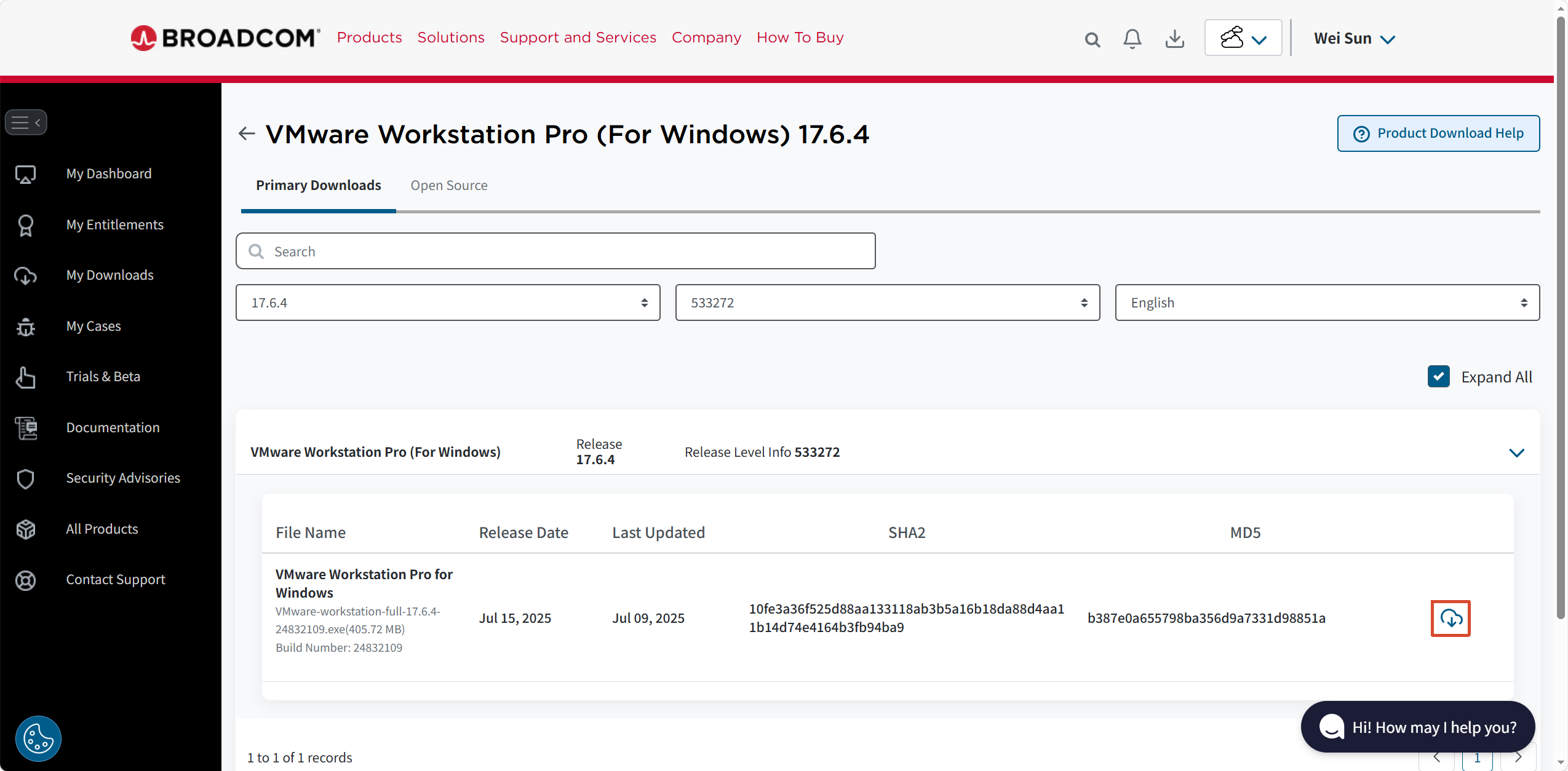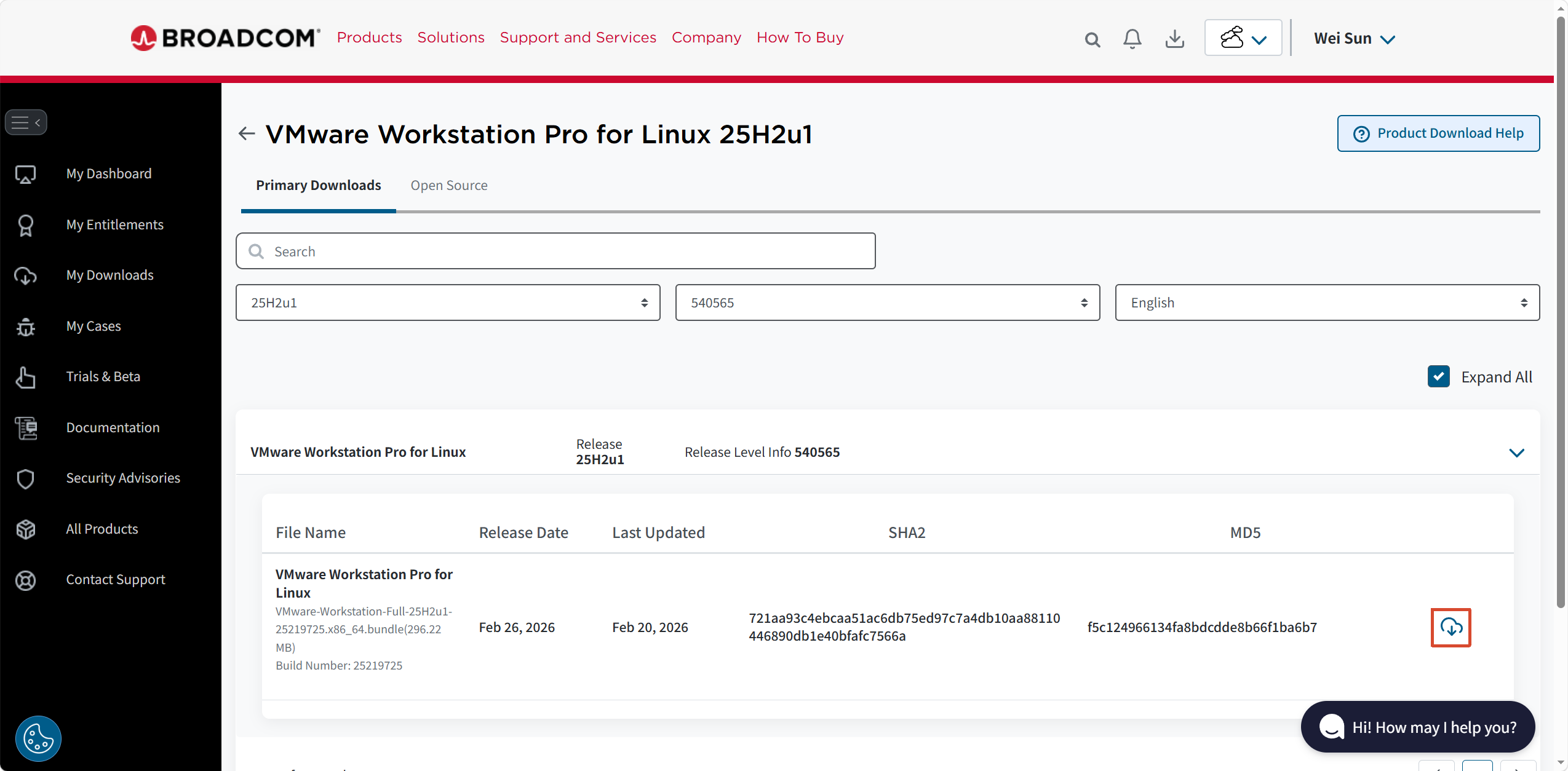 VMWare Workstation Pro从17.5.2允许个人用户免费用于学习,默认自行安装完成,由于VMWare已经被博通收购,所以下载前需要注册成功博通的账号,并且处于登录状态,下载地址如下,25H2是纯英文版,介意可以退回17版本