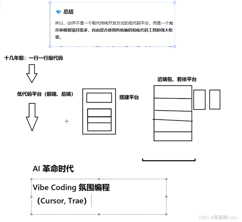 Karpathy 曾这样描述这种开发模式:"这不算真正的编程 ------ 我只是看看东西,说说东西,运行东西,然后复制粘贴东西,而且它大多都能工作"。但必须明确的是,Vibe Coding 并非完全放弃代码审查,它的本质是将详细的代码实现外包给 AI,开发者从 "代码编写者" 转变为 "代码审核者、需求定义者、架构设计者"。