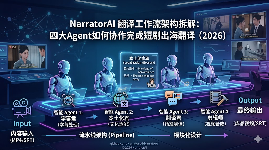 同时,每个 Agent 都可以作为独立工具单独调用------如果你已经有 SRT 文件,可以跳过字幕君直接进翻译流程;如果你只需要提取字幕不需要翻译,可以只调字幕君。这种模块化设计在 API 层面有直接体现,后面会展开。