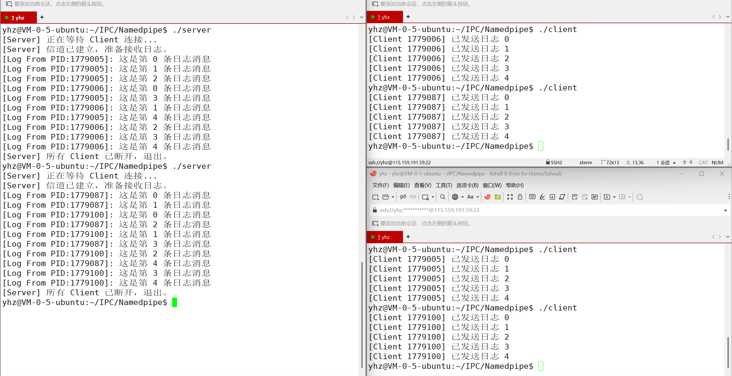 结论:管道在这里充当了一个"信号哨兵"。因为 Client 是"先写内存、后发信号",Server 是"先等信号、后读内存",所以 Server 读到的一定是 Client 已经写完的内容。