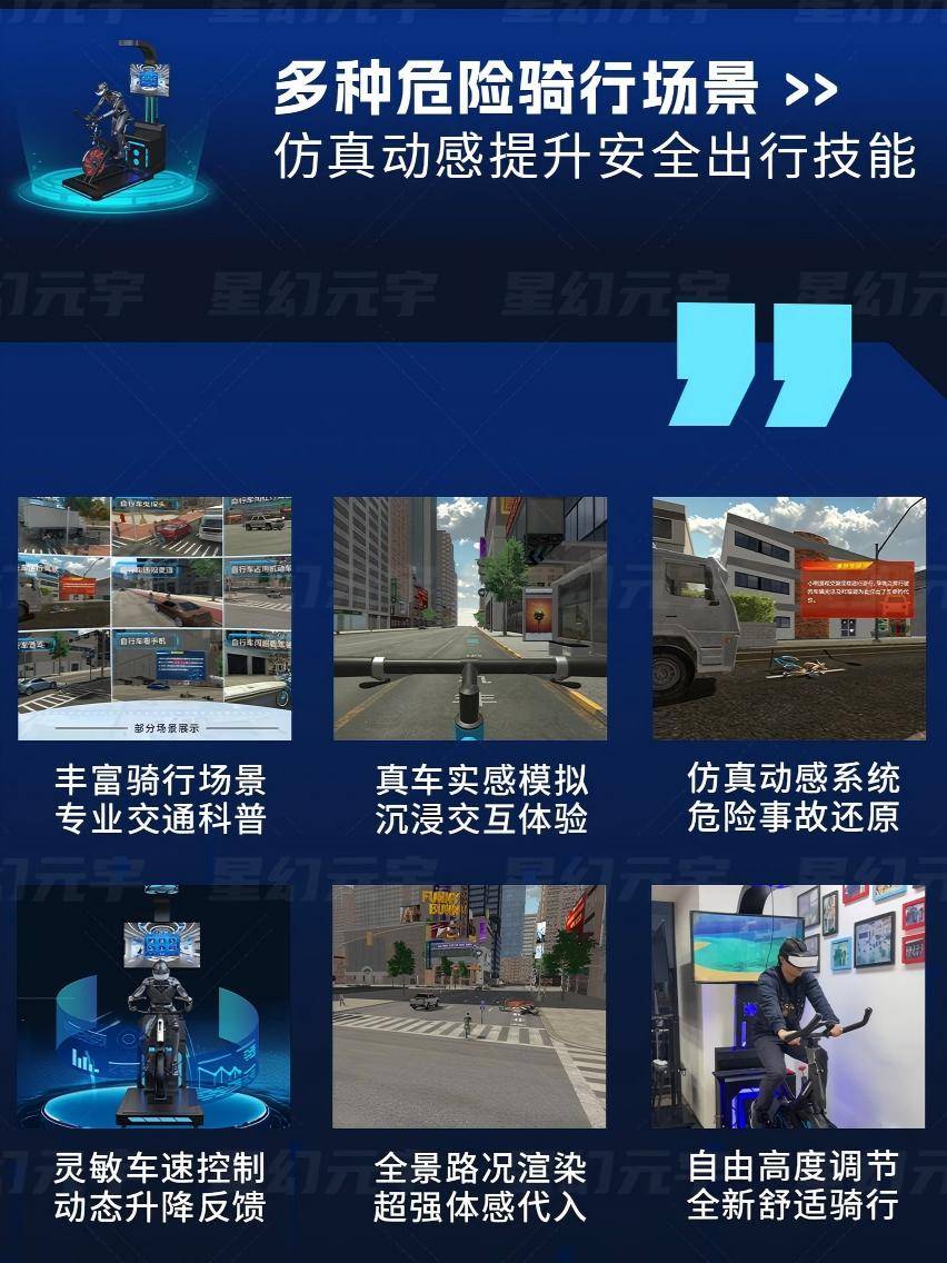 随着交通参与主体的多样化,自行车骑行安全教育的重要性日益凸显。VR自行车骑行模拟系统通过科技手段,让交通安全教育更具吸引力与实用性,在潜移默化中提升公众的规则意识和风险防范能力。