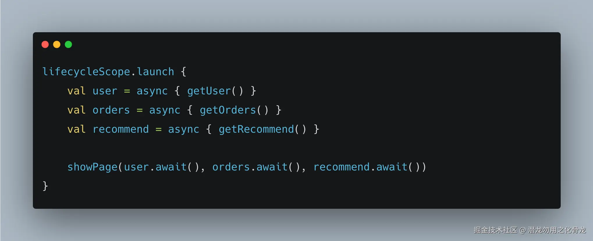 来看 Kotlin 协程怎么写同样的逻辑: