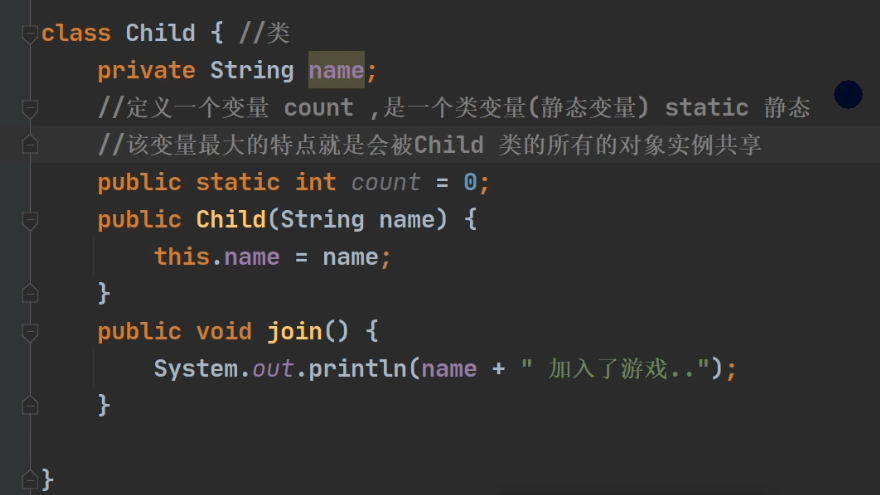也就是说,即使你没有创建对象,只要类加载了,就可以使用类变量了。