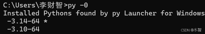 py.exe 是 Windows 自带的 Python 启动器,它会单独维护一个版本列表,默认把最新的 Python 版本标记为带 * 的默认版本。