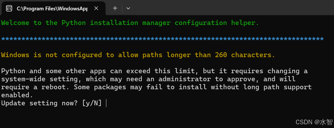 第一次输入y,如果你是windows11系统,会弹出高级应用设置,在这里关闭python的命令执行,默认输入python是跳转到微软商店的python,这里把这两个命令关掉。
