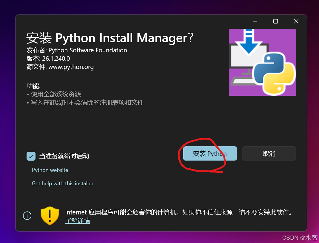 双击点开Python Install Manager,然后依据提示,一直输入y即可。
