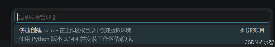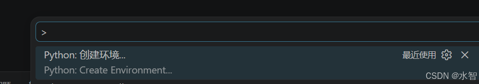在弹出的搜索框里,输入:Python: Create Environment然后点击这个选项。
