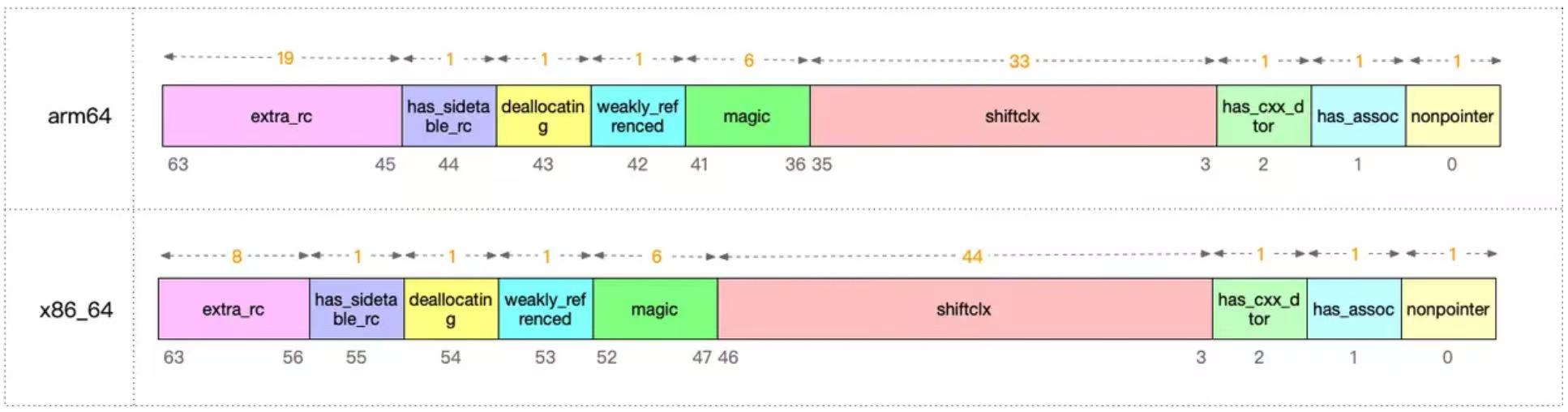 - superclass:Class类型,Class是由objc_object定义的,是一个指针,占8字节。