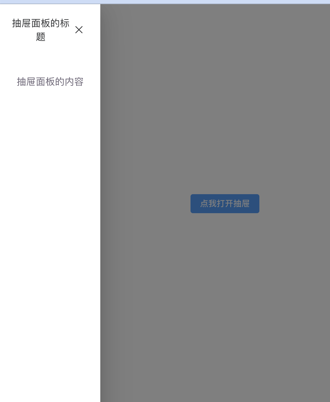 抽屉组件是一种全局的弹窗组件,在流行的网页应用中非常常见。当用户打开抽屉组件时,会从页面的边缘滑出一个内容面板,我们可以灵活地定制内容面板的内容来实现产品的需求。示例代码如下: