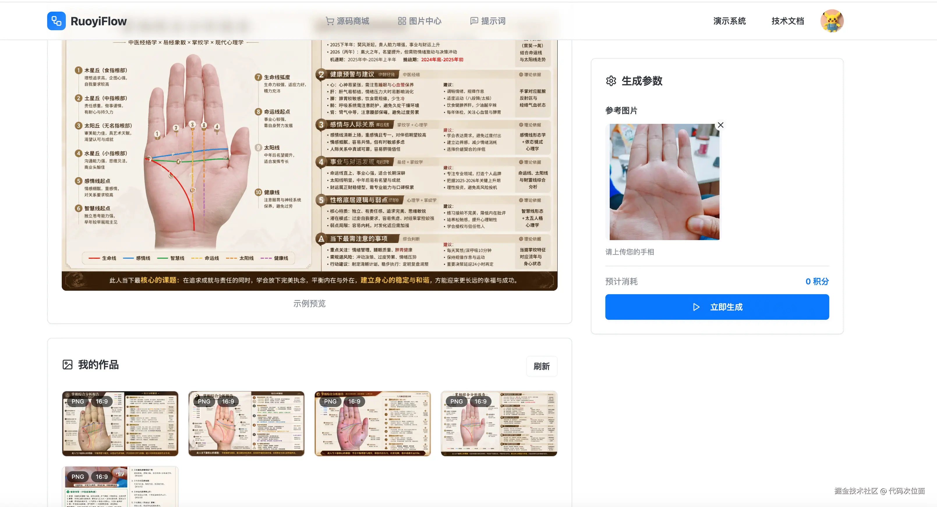 使用方式非常简单,, 右侧上传自己的手相图,稍等一会,就可以看到自己的赛博报告了