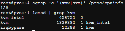 | Bash egrep -c '(vmx|svm)' /proc/cpuinfo |