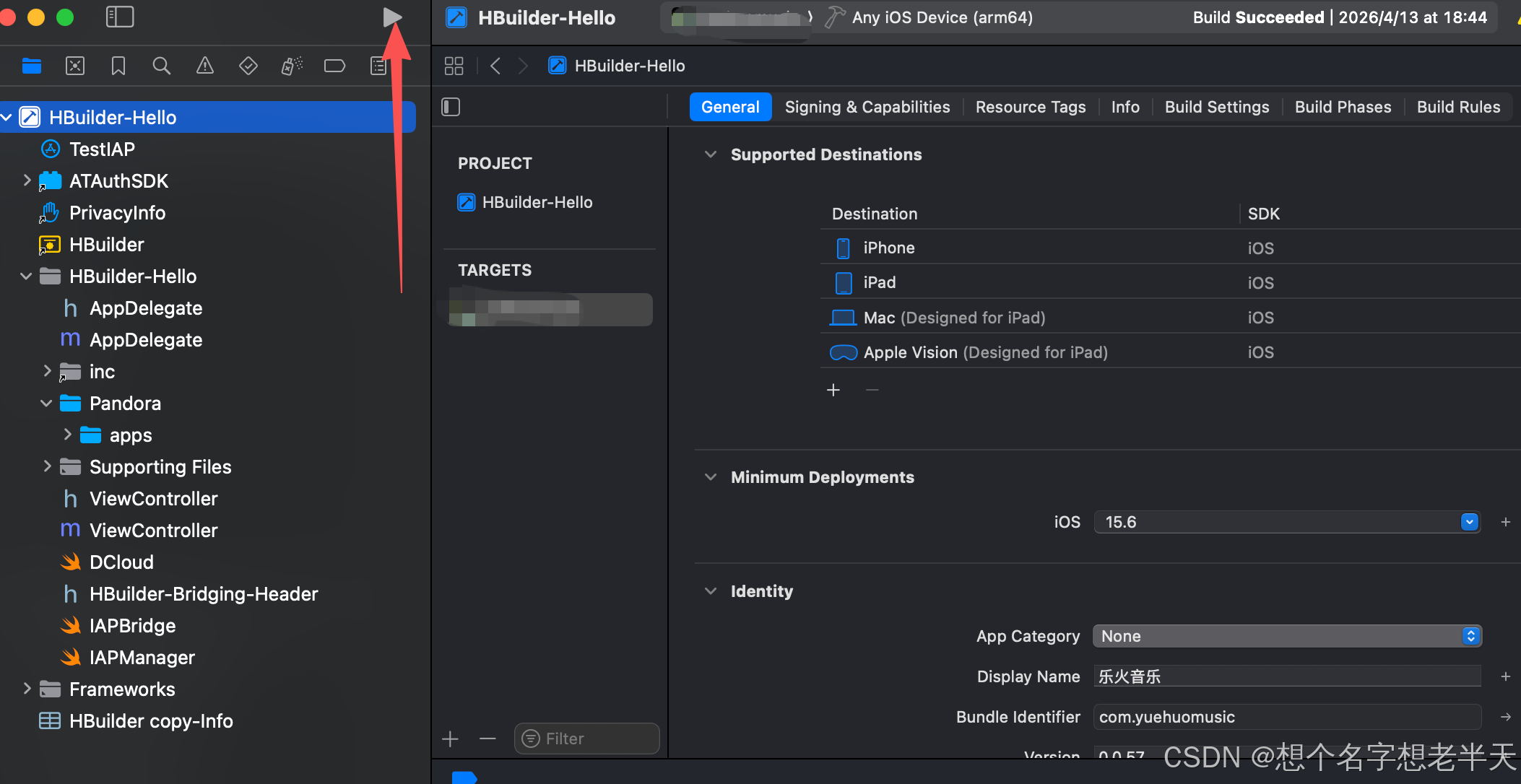 - 打开:HBuilder-Hello.xcodeproj