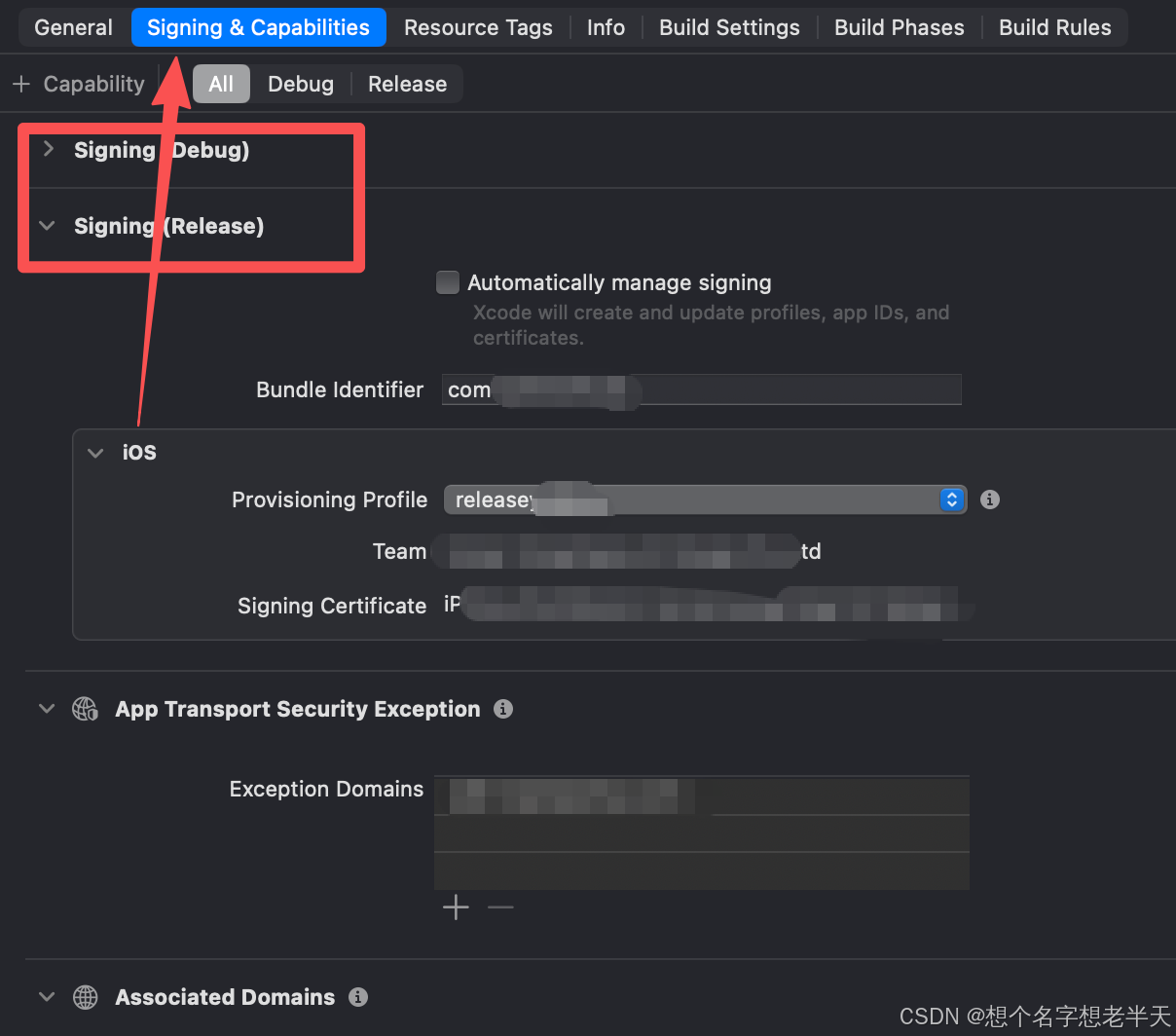 设置描述文件,apple 开发者后台申请的描述文件(一个 dev 的一个 release 的)