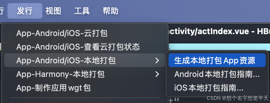 在 HBuilderX 中:发行 → 原生App-本地打包 → 生成资源