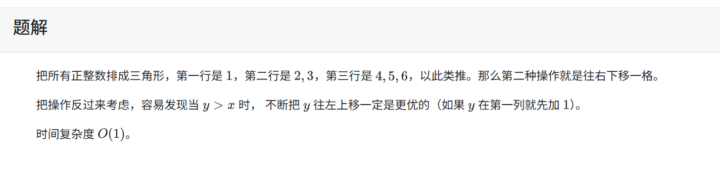 int ans=ly-lx;//操作2 x跳到与y同层 x向上跳的次数 就是三角形差的层数