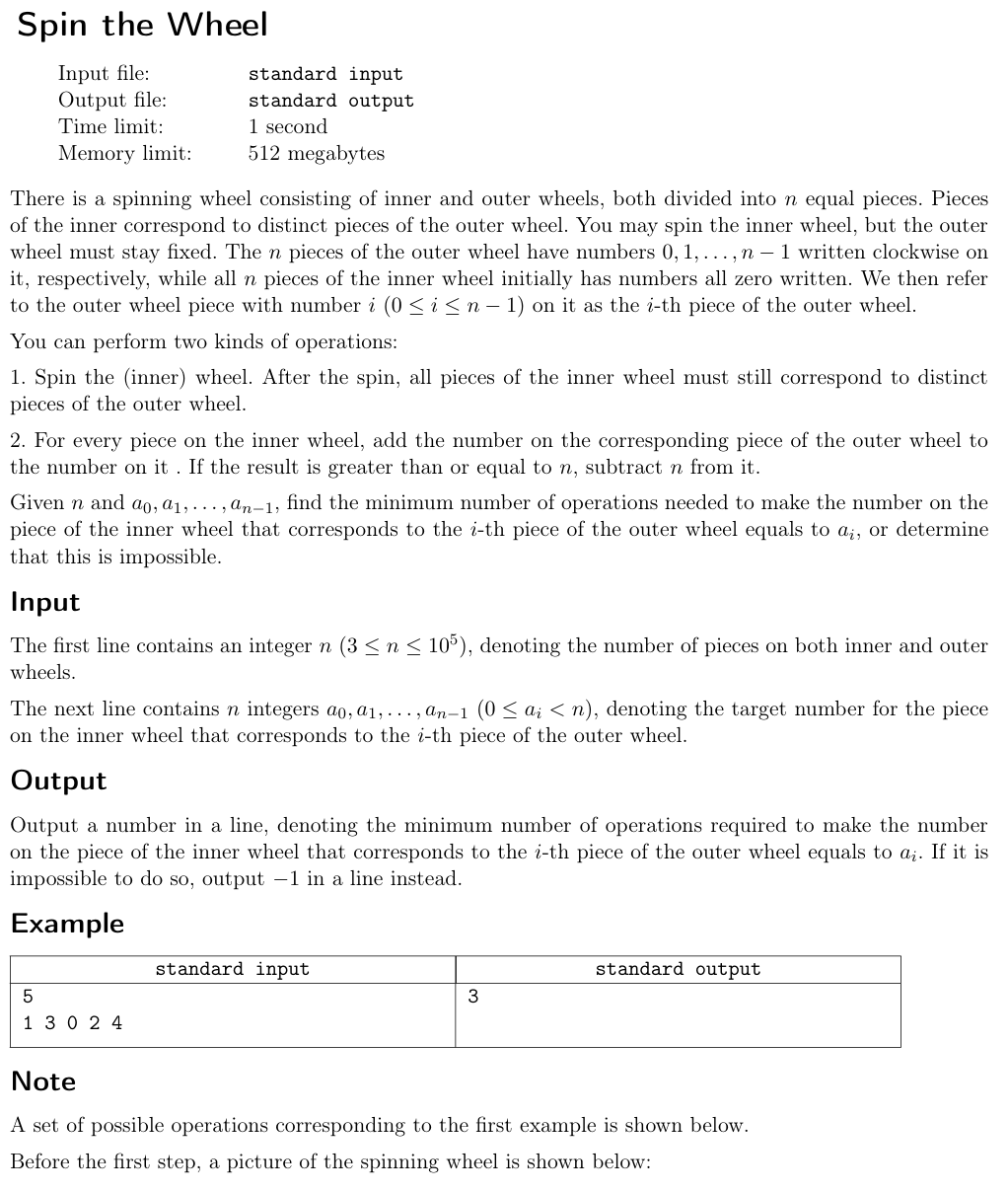 if ((a[i] - a[i - 1] + n) % n != dis)